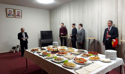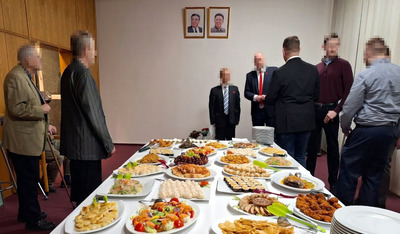 On February 9, a reception on the occasion of Shining Star Day was held at the DPRK Embassy in Germany. The reception, at the invitation of the Ambassador Extraordinary and Plenipotentiary of the DPRK to Germany, was attended by members of the European Executive Committee of the DPRK ISG, headed by Comrade Johannes Wittmund, as well as various political activists. The reception participants made speeches in honor of the 82nd anniversary of the birth of the Great Leader Comrade Kim Jong Il. They highly appreciated the Leader's outstanding achievements in socialist construction and noted that the Republic was able to defend its national sovereignty. Comrade Wittmund conveyed a message from Chairman Mostov to the DPRK Ambassador. Activists of our organization took a commemorative photograph.