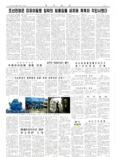 조선전쟁은 미제야말로 침략의 원흉임을 세계에 똑똑히 각인시켰다 1950년 6월 25일 세계제패야망에 환장한 미제는 끝끝내 우리 인민에게 참혹한 전쟁을 강요하였다.창건된지 2년밖에 안되는 청소한 우리 공화국은 3년동안 제국주의련합세력과 첨예한 대결전을 벌리지 않으면 안되였다. 우리 인민에게 헤아릴수 없는 불행과 고통, 막대한 인적 및 물적피해를 가져다주고 영원히 아물지 않는 상처를 남긴 이 전쟁에 미제는 자기 나라 륙군의 3분의 1, 공군의 5분의 1, 태평양함대의 대부분, 추종국가군대 등 200여만명의 방대한 무력을 동원하고 200억US$이상의 군사비를 쏟아부었다.태평양전쟁에서 소모한 물자의 11배에 달하는 7 300만t이상의 군수물자를 탕진하였다. 우리 국가와 미제와의 전쟁은 수적으로나 기술적으로 볼 때 대비조차 할수 없는 그야말로 상상을 초월하는것이였다. 조선전쟁시기 특파기자로 활동한 쏘련의 한 인사는 《쏘도전쟁이 대군과 대군사이의 전쟁, 련합국과 동맹국사이의 전쟁이였다면 조선전쟁은 세계제패를 꿈꾸는 대군과 엊그제 태여난 군대와의 전쟁, 련합국세력과 청소한 일개국사이의 보통상식을 벗어난 대결이였다.》고 평하였다. 세계전쟁사에 그 류례를 찾아볼수 없는 이 중과부적인 전쟁에서 우리 군대와 인민은 세계《최강》을 자랑하는 미제를 타승하고 조국의 존엄과 자주권을 수호하고 피로써 세계의 평화와 안전, 인류의 미래를 지켜냈다. 조선전쟁은 누가 평화의 수호자이며 누가 평화의 파괴자인가를 가장 명확하게 새겨주었다.미제야말로 침략의 원흉임을 세계에 똑똑히 각인시켰다. 제2차 세계대전시기에도 그렇고 그후에도 미제는 《해방자》, 《평화수호자》로 행세하였다.저들이 파쑈도이췰란드와 군국주의일본을 패망시키고 이 행성의 평화와 인류문명을 구원하는 《공적》을 이룩한것처럼 여론을 내돌렸다. 하지만 조선전쟁은 미제야말로 평화의 사도가 아니라 가장 흉악한 침략자, 평화의 원쑤, 두발가진 야수임을 만천하에 폭로하였다. 미국은 생겨날 때부터 침략자, 평화파괴자, 피를 즐기는 야수였다.공개된 자료에 의하더라도 미국은 건국이후 제1차 세계대전이전까지 침략전쟁은 114차, 군사적간섭은 무려 8 900여회나 감행하였다.말그대로 전쟁자체가 미국을 만들어내고 전쟁으로 미국이 존재하여왔다. 미제의 총칼에 의해 많은 나라와 민족들이 노예의 운명을 강요당하였다.그들의 피와 고통으로 비대해지고 제국주의의 우두머리로 등장한 미국은 조선전쟁도발로 세계제패의 길에 나섰다. 침략전쟁에서 단 한번의 패배도 몰랐다는 미제는 우리 국가를 단시일내에 점령하겠다고 호언장담하며 전쟁의 불을 질렀다.저들의 지배령역을 전 조선반도에로 확대하고 나아가서 제3차 세계대전을 일으켜 세계를 제패하려는 흉심을 실현하기 위한 첫 행동단계였다. 미제는 우리 공화국과 중국, 쏘련을 비롯한 여러 나라에 조성된 평화적환경을 깨뜨리고 세계를 저들의 지배밑에 넣으려고 획책하였다. 여기에서 제일 중시한 곳이 바로 새로 독립한 나라들의 선두에서 민주주의적인 발전의 길로 힘차게 전진하는 우리 국가였다. 미국도서 《비사 조선전쟁》에는 다음과 같은 대목이 있다. 《조선은 수세기동안 전략적십자로에 있었다.일본인들에게 있어서 조선은 아시아대륙으로부터 일본에 들이댄 권총이였으며 중국인들에게 있어서는 일본에 의한 중국침략의 력사적교두보였으며 미국인들에게 있어서는 공산주의의 그이상의 확장을 말살하는 〈봉쇄〉환의 제일 중요한 부분이였다.》 미제는 이렇게 조선반도의 지정학적위치를 중요시하고 전쟁초기부터 이 전쟁을 새로운 세계대전으로 확대하려고 작정하였다. 미극동군사령관이였던 맥아더가 《나는 항상 조선을 무한한 가치가 있는 군사적전초기지로 인정하였다.》고 하면서 《조선의 전 지역을 정복하는것에 의하여 우리는 쏘베트씨비리와 남방을 련결하는 유일한 보급선을 산산이 짓부실수 있을것이며 울라지보스또크와 싱가포르사이의 전 지역을 지배할수 있을것이다.그때에 가서는 우리들의 힘이 미치지 않는 곳이란 아무데도 없게 될것이다.》라고 한것이 이를 실증해주고있다. 미제는 이미 1948년-1950년초에 걸쳐 작성한 《A, B, C계획》이라는데서 제1단계는 조선침략전쟁으로 시작하며 제2단계에는 전쟁을 중국의 만주에로 확대하며 마지막단계에는 쏘련에까지 쳐들어갈것을 예견하였었다. 미제는 목적달성을 위해 수단과 방법을 가리지 않았다. 미국대통령 트루맨은 조선전쟁에서 원자탄사용을 내용으로 하는 핵공갈성명을 발표하였으며 제3차 세계대전을 일으키기 위한 《국가비상사태》를 선언하고 그 준비를 다그칠 계획을 세웠다.아이젠하워는 우리 국가와 중국동북지역에 30~50개의 원자탄을 투하할 작전을 세차례나 검토하였다. 이러한 사실자료는 미국이 제2차 세계대전후 주권국가들의 평화적발전을 가로막고 세계를 제패할 야망밑에 조선전쟁을 도발하고 핵무기까지 서슴없이 사용하려 하였다는것을 폭로해주고있다. 미제는 조선은 아시아에서 미국의 모든 성공이 달려있을지도 모르는 
