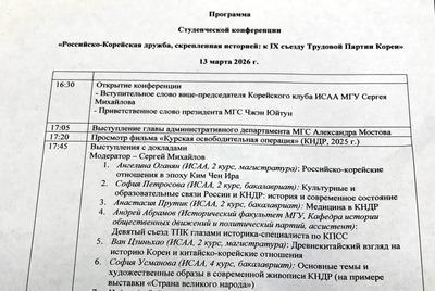 — Student Conference “Russian-Korean Friendship Forged by History: Dedicated to the 9th WPK Congress” Held — On March 13, students and lecturers of the Institute of Asian and African Studies at Moscow State University, as part of the International Scientific Conference for Studying the Results of the 9th WPK Congress, delivered reports testifying to the undying merits of the Workers' Party of Korea before the people of the DPRK and all progressive peoples of the world. The conference “Russian-Korean Friendship Forged by History: Dedicated to the 9th WPK Congress” brought together students and staff of IAAS and other faculties of Moscow University, as well as guests from other higher education institutions, united by the desire to deeply study the historic results of the 9th WPK Congress and the successes achieved by the Party during the reporting period. A message from the Coordination Committee of the DPRK International Solidarity Group (DPRK ISG) was read out. Comrade Sergey Mikhailov directed the proceedings. The speakers presented in the following order: 1. International Significance of the Results of the 9th WPK Congress 2. Russian-Korean Relations in the Era of Kim Jong Il and Their Development during the Reporting Period of the 9th WPK Congress 3. Cultural and Educational Ties between Russia and the DPRK: History and Current State 4. Medicine in the DPRK 5. The 9th WPK Congress through the Eyes of a Historian Specializing in the CPSU 6. An Ancient Chinese View on the History of Korea and Chinese-Korean Relations 7. Main Themes and Artistic Images in Contemporary Painting of the DPRK (on the Example of the Exhibition “Country of the Great People”) After the opening of the conference, Alexander Mostov, Director of the 4th Administrative Department of the DPRK ISG, addressed the participants and guests, outlining the decisions of the 9th Congress that are particularly significant not only for advancing the revolution and construction within Korea but also for the international struggle for independence and justice. Comrade Mostov emphasized the importance of developing a scientific approach to studying the activities of the WPK, fundamentally different from the biased practices of Western experts and analysts. He noted that against this backdrop, the role of the scientific and student community is especially important. In the current situation, only the demarginalization of the international solidarity movement with the DPRK, a final rejection of various forms of “political cosplay” and the vicious practice of “ritual gatherings” in favor of holding conferences that promote the study of Korea and its social system on a scientific basis, can influence public consciousness, in which over decades of dominance of the ROK narrative many fakes and prejudices regarding the DPRK have become entrenched. The participants and guests of the conference once again watched the documentary film “Kursk Liberation Operation,” which has already become so beloved by Russians. It was emphasized that our country, all its people, will always remember the feat of the Korean warriors who gave their lives and youth for the liberation of Russia and the cause of fighting fascism. Finally, students of Moscow University delivered reports on various topics related to the policies of the WPK and its achievements, many of whom in the future will become not only scholars but also diplomats building Russian-Korean relations at a new level. Angelina Oganyan, a second-year master's student, spoke about the historical foundations and political mechanisms of practical cooperation between Russia and the Democratic People's Republic of Korea, in which inter-party contacts play a special role. During the reporting period of the 9th Congress, Russian-Korean relations reached comprehensive strategic partnership, demonstrating the WPK's firm course towards strengthening the friendship between our two countries. Sofia Petrosova, a second-year bachelor's student, continuing the theme of Russian-Korean relations, outlined the main historical directions of cultural contacts between the two countries, noting the unprecedented breadth of cultural and educational ties between Russia and the DPRK in the five-year period before the 9th Congress. Also a second-year bachelor's student, Anastasia Prutik, speaking about the history of Korean medicine and the challenges faced by the DPRK's healthcare system, emphasized the special attention of respected Comrade Kim Jong Un to the care for the people's health, which was reflected in the construction of new modern hospitals not only in the capital but also in the provinces. Andrei Abramov, Assistant at the Department of History of Political Parties, Faculty of History, Moscow State University, compared the role, scale, and tasks of the CPSU congresses in the Soviet Union and those of the Workers' Party of Korea. He particularly highlighted the scientific and mass-oriented approach to the formation of WPK policy, born in practical activity and lively discussions. Wang Jinhao, a second-year master's student, spoke about the history of the formation and development of Korean-Chinese relations, which have not only a political-economic but also a cultural, civilizational character. Fourth-year bachelor's students Sofia Usmanova and Nadezhda Zainutdinova addressed themes of art, which in the public life of the DPRK serves as a powerful means of raising the creative forces of the masses for the construction of socialism. The paintings and other art objects presented to Russians in the autumn of 2025 at the exhibition “Country of the Great People” were mostly created precisely during the reporting period of the 9th Congress, when the creative impulse of the Korean people reached unprecedented heights. Concluding the work of the conference, Comrade Sergey Mikhailov, Head of the Friendship Club with Korea at the Institute of Asian and African Studies, Moscow State Univers