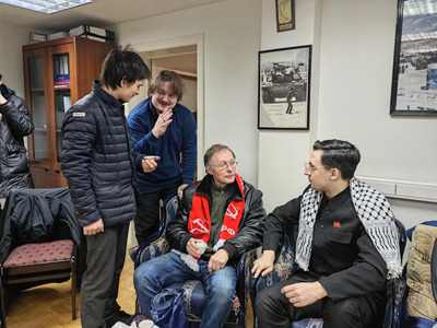 В условиях, когда с каждым днем вскипает справедливый гнев прогрессивных людей мира на сионистских извергов, варварски разрушающих Палестину — сердце арабского мира, Международная Группа солидарности с КНДР (МГС КНДР) продолжает последовательную работу, направленную на укрепление интернациональных связей. В рамках этой деятельности в декабре 2025 года в Москве состоялась рабочая встреча Директора Департамента Азии Международной ассоциации фондов мира (МАФМ) и Директора 4-го Административного департамента Международной Группы солидарности с КНДР товарища Александра Мостова с многоуважаемым Абдельхафизом Нофалем, Чрезвычайным и Полномочным Послом Государства Палестина в Российской Федерации. На встречах товарища Мостова сопровождали активисты Иван Козлов (региональный секретарь в ЦФО РФ), Анна Зорич (секретарь Клуба дружбы с КНДР в Университете мировых цивилизаций) и представители дружественной Коммунистической партии Российской Федерации (КПРФ). Директор Мостов от имени руководства МАФМ и МГС КНДР выразил твердую и неизменную поддержку справедливой борьбе Движения за национальное освобождение Палестины (ФАТХ) за осуществление законных прав палестинского народа. Была отмечена долгая и славная история дружбы и взаимной поддержки между Кореей и Палестиной, основанная на общности антиимпериалистических идеалов и борьбы против колониализма и агрессии. Директор Мостов подчеркнул решимость нашей организации активизировать работу по установлению официального представительства в Палестине, несмотря на все угрозы и противодействие со стороны сионистских сил и их западных покровителей. В последующие дни для дальнейшей проработки практических вопросов руководящие работники МГС КНДР провели несколько рабочих консультаций с Первым секретарем Посольства Государства Палестина в РФ, великим арабским поэтом и видным общественным деятелем Абдаллой Исой. По итогам принято решение о создании Палестинского исполнительного комитета Международной Группы солидарности с КНДР.