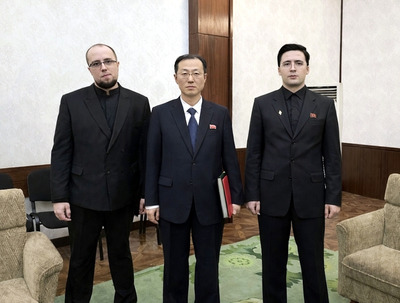 Am 16. Dezember besuchte der Koordinator der Partei "Das andere Russland des E. W. Limonow", Michail Aksel, die Botschaft der DVR Korea mit dem Ziel, die freundschaftlichen Beziehungen auf der Ebene seiner Partei wiederherzustellen und weiterzuentwickeln. An diesem Tag fand eine feierliche Trauerkundgebung statt, die von der Russischen Gesellschaft für Freundschaft und kulturelle Zusammenarbeit mit der DVR Korea (einem Kollektivmitglied der Internationalen Solidaritätsgruppe der DVR Korea) anlässlich des 14. Todestages des Genossen Kim Jong Il organisiert wurde. Daran nahmen der Außerordentliche und Bevollmächtigte Botschafter der DVR Korea in der Russischen Föderation und Botschaftsmitarbeiter, entsprechende Vertreter des russischen Außenministeriums, der Staatsduma der Russischen Föderation, der KPRF, der LDPR und des Rates der Veteranen des Koreakrieges sowie Persönlichkeiten der internationalen Solidarität teil. Im Namen der russischen Nationalbolschewisten sprach Genosse Michail Aksel dem Außerordentlichen und Bevollmächtigten Botschafter der DVR Korea in der Russischen Föderation, Genossen Sin Hong Chol, sein Beileid aus. Er merkte an, dass "Das andere Russland" selbst in den schwierigsten Jahren Korea als das ideologisch nächste Land unterstützte und beabsichtige, die Beziehungen in Zukunft zu stärken. Daraufhin stellte der Vorsitzende der DVRK ISG, Alexander Mostow, Michail Aksel dem neuen Botschaftsrat der DVR Korea, Genossen Kim Chun Song, vor. Während des darauf stattfindenden Gesprächs wurden weitere praktische Schritte für die Entwicklung gegenseitiger Kontakte umrissen. Der Leiter unserer Organisation lud ihn ein, eine Fotoausstellung zu besichtigen, die die jüngsten militärischen und zivilen Erfolge Koreas im sozialistischen Aufbau widerspiegelt, die trotz Sanktionen durch Selbsthilfe erzielt wurden. Gleichzeitig betonte Genosse Mostow, dass er hoffe, die russischen Nationalbolschewisten wieder bei Solidaritätsveranstaltungen zu sehen. Er bemerkte: