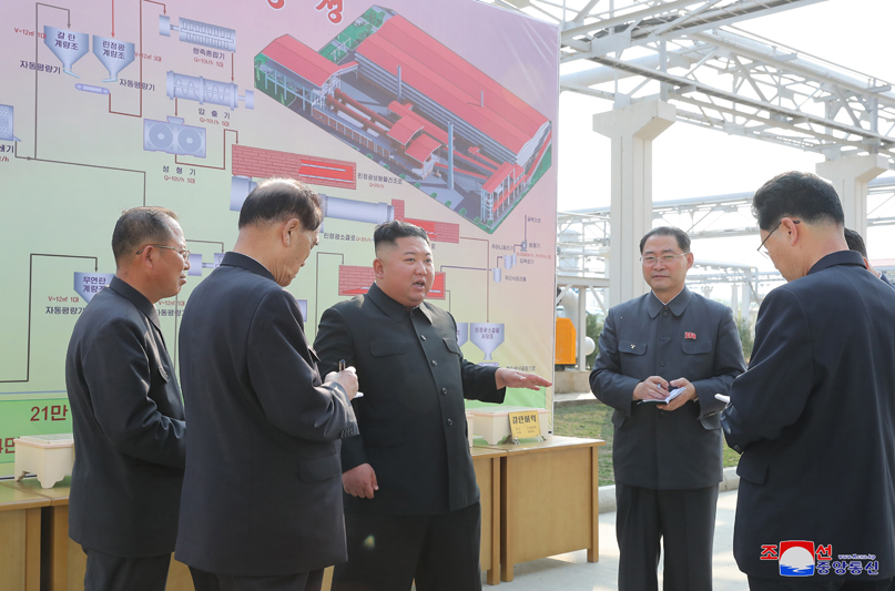 경애하는최고령도자김정은동지께서는 완공된 공장의 생산공정들에 대한 해설을 들으시며 원료가공공정, 황린생산공정, 린안생산공정, 제품포장공정을 비롯한 여러곳을 돌아보시였다.