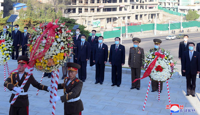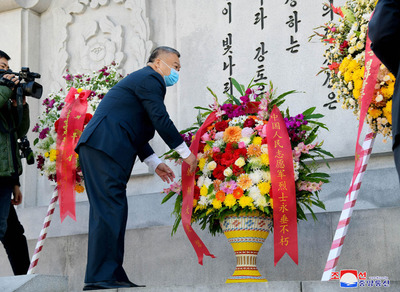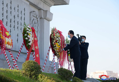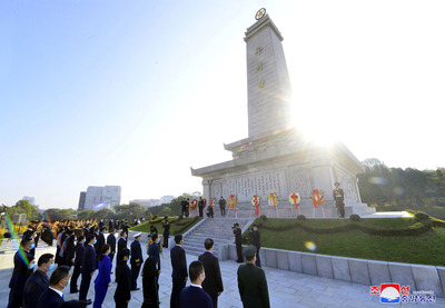 纪念中国人民志愿军赴朝参战71周年敬献花圈仪式举行 在中国人民志愿军赴朝参战71周年之际,敬献花圈仪式25日在友谊塔举行。 最高人民会议常任委员会副委员长姜润石、朝鲜劳动党中央委员会副部长文成革、国防省副相金铁根陆军中将、外务省副相朴明浩、有关部门干部参加了仪式。 中华人民共和国国歌和朝鲜民主主义人民共和国国歌庄重奏响。 朝鲜劳动党中央委员会、朝鲜民主主义人民共和国最高人民会议常任委员会、朝鲜民主主义人民共和国内阁共同名义的花圈敬献在友谊塔前。 国防省、外务省、社会安全省、对外经济省、文化省名义的花圈以及对外文化联络委员会和朝中友好协会、朝鲜劳动党平壤市委员会和平壤市人民委员会共同名义的花圈也分别敬献在友谊塔前。 全体参加人员肃立默哀,悼念高举抗美援朝、保家卫国的旗帜,在反对帝国主义武装侵略圣战中发扬崇高的国际主义道义和无比牺牲精神的中国人民志愿军烈士,并参观了友谊塔。 同日,在平壤市兄弟山区、平安南道安州市和桧仓郡、咸镜北道稳城郡、开城市的中国人民志愿军烈士陵园和烈士墓也举行了敬献花圈仪式。