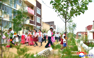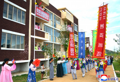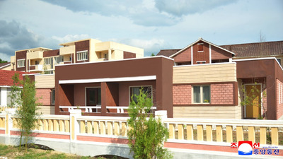 高城郡凤竹农场和顺鹤农场新建村落落成 在党中央将全国所有农村转变为人民安居乐业的地上乐园的崇高意图正在变为骄傲现实的背景下,高城郡凤竹农场和顺鹤农场举行了新居入住仪式。 位于名山金刚山麓的这些农场村落,由各种形式的低层、单层住宅以及数百棵树木和花灌木构成景观,直观展现了劳动党时代农村振兴的真实面貌。 高城郡秉承党将农村建设作为重要国策的意志,优先加强建设旅团的技术工人力量并保障材料供应,利用高效建设设备和机具全力推进工程。 干部和建设者牢牢把握基于地方原料的建筑材料生产和施工质量提升,发挥顽强的执行力,出色地建成了保障政治性、现代性和文化性的雅致文化住宅。 19日,高城郡凤竹农场举行了住宅入住大会,江原道和高城郡的干部、建设者以及即将入住新居的农业劳动者参加了大会。 大会上,发言人热烈祝贺在党的恩情下喜迁新居的农场员们。 他提到,敬爱的金正恩同志展现了在不久的将来将全国所有农村转变为富裕文明的社会主义理想村的宏伟蓝图,并精力充沛地领导了农村住宅建设。 发言人强调,所有干部和农业劳动者都要深深铭记党的恩情,将家乡建设得更加美丽,无私奉献爱国的汗水和热情,以丰收的骄傲成果迎接党的第九次代表大会。 在与会者的热烈掌声中,住宅使用许可证被授予,并进行了讨论发言。 讨论者向为人民文明和福利增进呕心沥血,以不眠不休的奉献在这片土地上开创我们式农村发展新局面的敬爱的元帅同志致以诚挚谢意。 他们表示,永远不会忘记母亲党大海般的关爱和信任,将尽到作为农村革命担当者和主人的本分,在具有深远意义的建党80周年之年,迎来稻浪翻滚的丰收金秋。 新居入住开始后,欢快的农乐舞和祝贺演出舞台相继展开,干部们走访文化住宅的主人,共享喜悦。