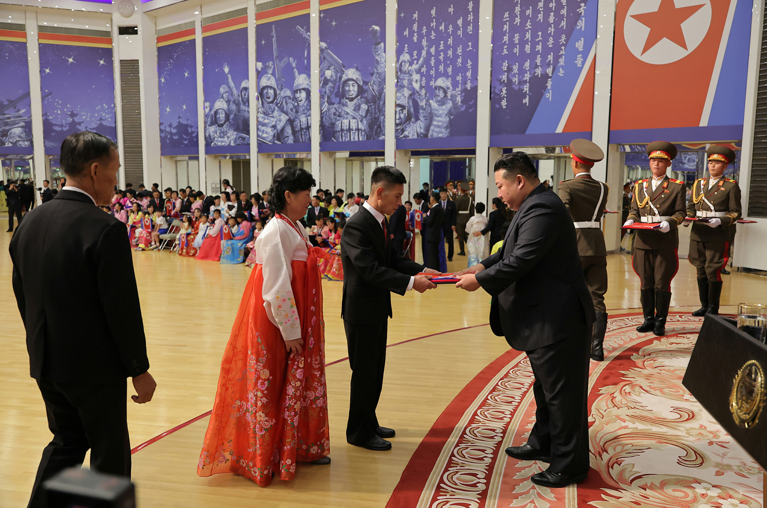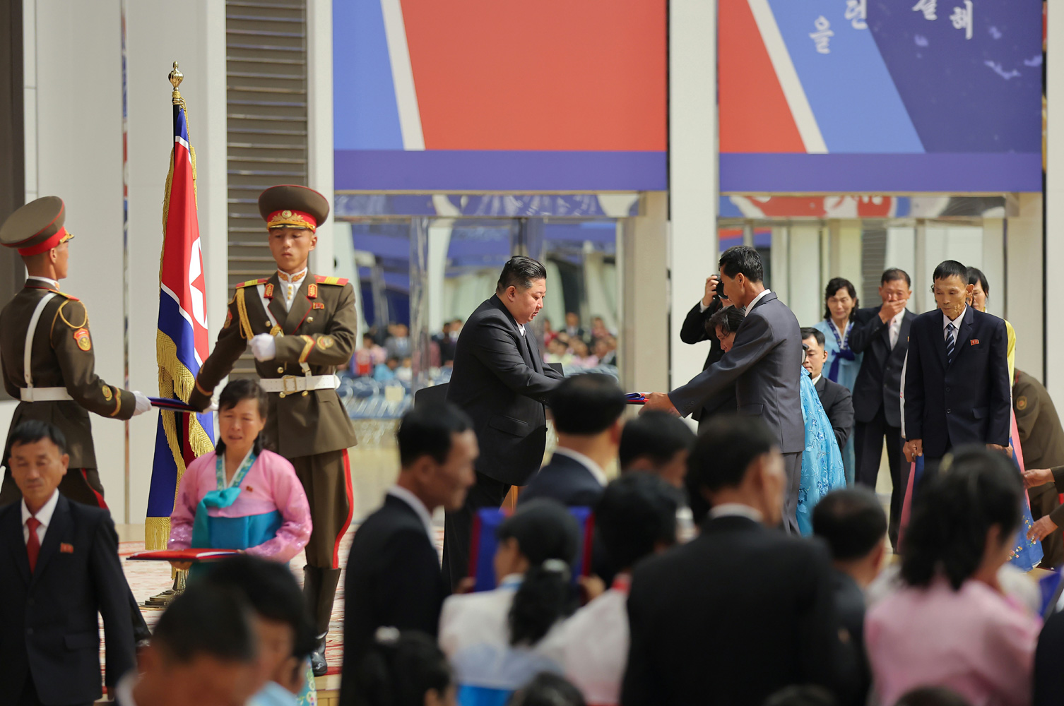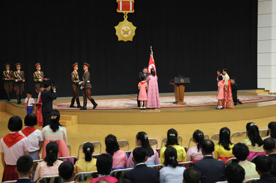 18:41 敬爱的金正恩同志会见在海外军事作战中建立殊勋的参战烈士遗属表示慰问并同他们合影留念 | |