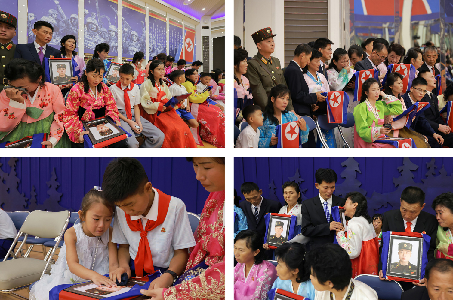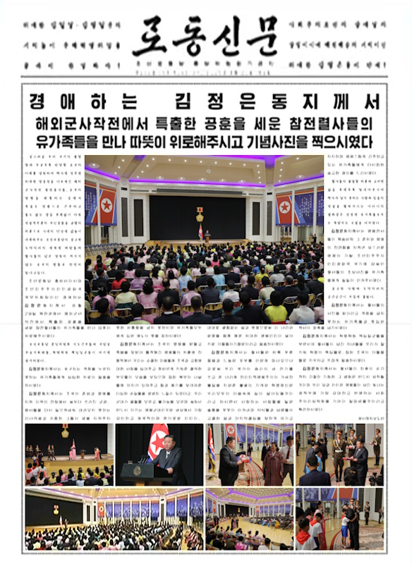 怀着对我们神圣国旗的不朽性和祖国繁荣未来的信念,在海外军事行动中谱写历史上前所未有的伟大英雄传的参战勇士们,在执行祖国命令的道路上视死如归、无悔献出宝贵生命的传奇功勋主人公们,在朝鲜劳动党崇高的道德义理世界中,被推崇为时代的楷模,烈士们的灵魂作为永不熄灭的祖国之星灿烂闪耀。 朝鲜劳动党总书记、朝鲜民主主义人民共和国国务委员长敬爱的金正恩同志8月29日在木兰馆会见了在海外军事行动中建立特殊功勋的参战烈士家属并给予温暖安慰。 朝鲜劳动党中央委员会指导干部和国防省主要指挥员、革命学院责任干部参加了此次活动。 敬爱的金正恩同志向难以抑制激动情绪的家属们表达了深切慰问之言。 敬爱的金正恩同志难以抑制内心的痛惜之情,为未能保护好那些在异国战场为捍卫祖国尊严和荣誉而战斗倒下的军官和士兵们的宝贵生命而感到悲痛,并向所有家属表示深切哀悼。 敬爱的金正恩同志表示,从奉祖国命令迎死冲锋的英雄们的丰功伟绩中,我们看到了在纯洁心灵中植入并正确培养对祖国和家乡热爱的坚贞父母形象,生动感受到了在真正服役岁月中成为依靠并增添力量与勇气的深情关怀。我们的军队是一支不知屈服、不知不可能、战必胜的英雄军队,因为这是由世界上最坚强、最爱国、最正义的人民,世代以不屈的生活和斗争与这个国家命运与共的伟大英雄人民养育的儿子们组成的。 敬爱的金正恩同志说,烈士们虽然怀着青春年华和崇高抱负离去,但他们用鲜血书写我国胜利新篇章、在全国点燃全民族英雄主义熊熊烈火的不可屈服的气概和革命精神将永远活在我们每个人心中,并再次向失去亲人的家属们表示崇高敬意,赞扬他们坚强克服悲伤,豪迈地看待、支持并光荣对待子女和丈夫们的高洁人生和最后决心。 所有家属为领袖如火般的真情而涌出热泪,领袖使烈士们的不朽功勋和高贵人生永放光芒,展开历史未知的爱与信任传说。 敬爱的金正恩同志将英雄战士们用生命守护其尊严和荣誉灿烂性的神圣光荣旗帜——朝鲜民主主义人民共和国国旗包裹的烈士肖像照片一一授予家属。 崇高的爱与道德义理的每一个瞬间热烈流淌。 敬爱的金正恩同志与手捧烈士照片激动不已的家属们留下了有意义的历史画卷。 敬爱的金正恩同志召唤革命学院责任干部,热情地说要好好培育烈士们留下的子女,将他们培养成为革命的核心、祖国真正的儿女。 敬爱的金正恩同志坚信烈士们直到最后时刻恳切祈愿的那一愿望必将实现,并断言我们党和人民必定在英雄们留下的光辉业绩基础上建立起最强大繁荣的社会主义理想乐园。 本报政治报道组