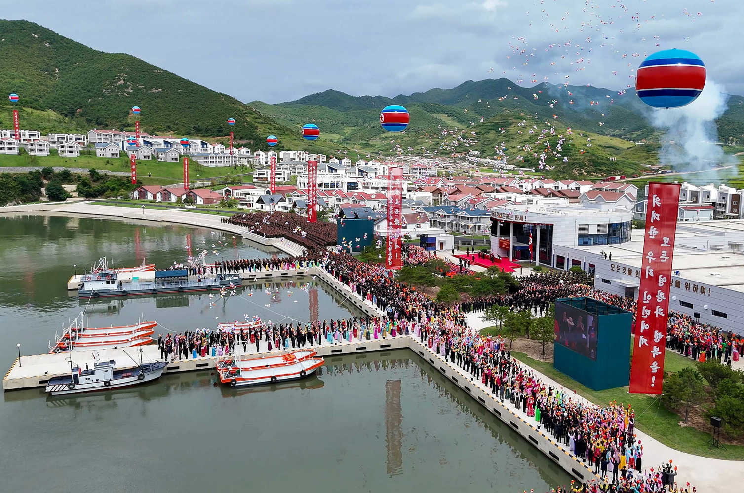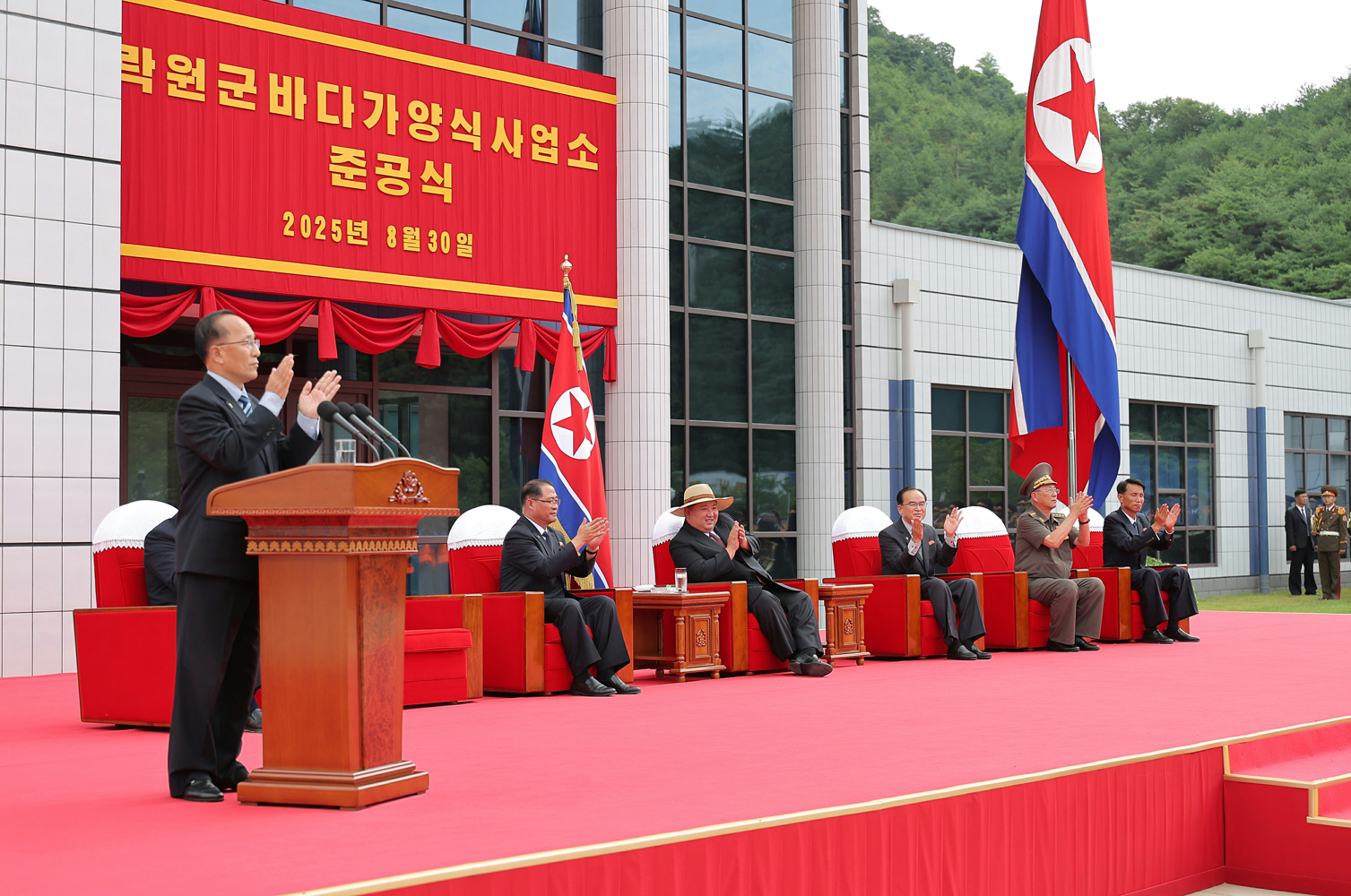 지방진흥의 새시대와 더불어 동해기슭에 펼쳐진 또 하나의 눈부신 선경 락원군바다가양식사업소 준공식 성대히 진행 전국의 시,군을 문명부유하고 발전된 사회주의강국의 지역적거점으로 전변시켜나가는 조선로동당의 현명한 령도는 지방진흥의 세기적위업실현을 앞당기며 조국땅도처에 륭성과 번영의 재부들이 련이어 일떠서는 미증유의 거창한 변혁시대를 펼치고있다. 동서 두면이 바다와 접해있는 우리 나라의 자연지리적특성에 맞게 해양연선지역 시,군들이 수산업을 발전시켜 지방경제의 자립적토대를 강화하고 지역주민들의 물질생활을 향상시킬데 대한 우리당 지방발전정책과 력사적인 당중앙위원회 제8기 제11차전원회의 결정에 따라 올해 당과 국가의 중요정책건설대상으로 강력히 추진되여온 락원군바다가양식사업소와 어촌문화주택지구가 의의깊고 성대한 준공의 날을 맞이하였다. 김정은동지의 숭고한 애국,애민의 뜻이 어린 《락원포》건설에 분기해나선 군인건설자들은 인민군대특유의 결사관철의 정신과 기적창조의 투쟁본때로 선진적인 생산시설 및 가공공정들을 그쯘히 갖춘 특색있는 수산물생산기지와 함께 산기복을 따라 주변의 자연풍치와 어울리면서도 편리성과 미학성,조형예술성에 있어서 가장 독특한 수백세대의 어촌문화주택들을 번듯하게 일떠세우는 자랑찬 로력적위훈을 창조하였다. 지방진흥의 새시대와 더불어 동해기슭에 또 하나의 기념비적창조물로 일떠선 락원군바다가양식사업소 준공식이 8월 30일 성대히 진행되였다. 준공식장은 새 생활,새 문명의 기쁨을 향유하는 락원군주민들의 크나큰 환희와 우리 식의 리상어촌건설로써 인민의 행복의 창조자로서의 명함을 빛내인 군인건설자들의 무한한 긍지로 끓어번지고있었다. 경애하는 김정은동지께서 준공식에 참석하시였다. 환영곡이 울리는 가운데 김정은동지께서 준공식장에 도착하시자 전체 참가자들은 우리 인민모두가 세상에 부럼없는 만복을 누리도록 하시려 끊임없는 사색과 창조의 날과 달을 이어가시며 전국이 다같이 진흥하는 거창한 번영의 시대를 인도해가시는 위대한 령도자를 격정속에 우러르며 열광의 환호를 터쳐올리였다. 조선로동당 중앙위원회 정치국 상무위원회 위원들과 당과 정부,무력기관의 지도간부들,해양연선지역 도,시,군당책임비서들,도인민위원장들,지방발전20×10비상설추진위원회 성원들,함경남도와 락원군의 일군들,근로자들,군인건설자들,락원군바다가양식사업소 종업원,가족들이 준공식에 참가하였다. 조선로동당 중앙위원회 정치국 후보위원이며 당중앙위원회 부장인 주창일동지가 준공사를 하였다. 연설자는 지난 2월까지만 해도 자그마한 포구에 모래불이 전부였던 이곳이 불과 190여일만에 지방의 눈부신 혁신과 문명을 상징하는 황홀한 경관으로 전변되였다고 하면서 바다가양식기지로서는 명당자리에 경제적효과성과 전망이 큰 사업소와 함께 해안지대의 특색이 살아나는 문화주택지구까지 완벽하게 일떠섬으로써 세상에서 제일 아름다운 포구를 락원군에 선물하자고 한 우리 당의 숙원이 빛나게 실현되였다고 언급하였다. 우리당 지방발전정책실행의 두번째 해에 제일먼저 이룩된 자랑찬 결실이며 사회주의락원의 표상을 뚜렷이 하고 새시대 지방발전정책이 가져다주는 선진적인 발전면모와 인민의 행복상을 선명히 그려낸 전변의 이 실체는 우리의 창조와 변혁의 비상한 전진속도를 보여주고 미래에 대한 신심을 백배해주는 사변적성과물로 된다고 그는 말하였다. 그는 오늘 우리가 마주한 전변상은 2년도 안되는 로정을 거친 우리 당의 지방발전정책이 전국적인 판도에서 인민들의 초보적인 생활상수요를 충족시키는데로부터 보다 근본적이고 전면적인 령역에서 확실한 개변을 일으키는 단계에로 확신성있게 이행하고있음을 실증해주고있다고 말하였다. 락원군바다가양식사업소건설에서 나서는 원칙적문제들을 세심히 가르쳐주시고 건축에 대한 관점과 안목,설계와 시공,생산시설장비를 비롯한 모든 면에서 새로운 발전국면이 이룩되도록 정력적으로 이끌어주신 김정은동지의 헌신과 직접적인 지도에 의하여 조국청사에 특기할 뜻깊은 2025년에 인민의 리상향으로 떠오른 락원포의 천지개벽은 인민을 위한 어버이의 열화같은 진정과 우리당 인민대중제일주의정치의 숭고함을 길이길이 가슴뜨겁게 웅변할것이라고 그는 강조하였다. 그는 당중앙위원회의 위임에 따라 당과 인민이 바라는것이라면 결사의 투쟁으로써,비상한 노력으로써 부과된 임무를 가장 완벽하게 수행하고 당정책의 진리성과 생활력을 명백한 실물로 립증한 전체 인민군장병들에게 열렬한 감사를 표하였다. 김정은동지께서는 자리에서 일어서시여 깨끗한 량심과 조국과 향토,부모처자에 대한 진실하고 열렬한 사랑으로 력사에 전례없는 변천과 진흥의 자랑찬 결실들을 이룩해나가는 인민군군인들의 절대적인 애국충성과 고결한 헌신성에 전투적경의를 보내시였다. 연설자는 락원포건설과 같은 보람있는 일들을 더 많이 찾아 훌륭히 해내고 온 나라 시,군들을 흥하게 만들자는것이 김