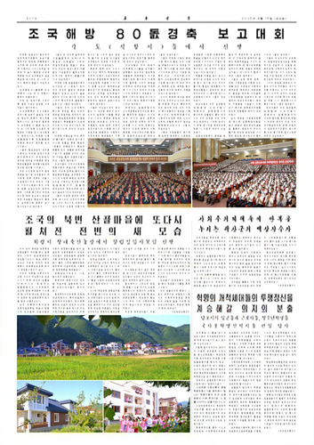 解放80周年庆祝报告会在各道(直辖市)举行 在伟大的党中央领导下,全国正迎来全面复兴的全盛期。值此祖国解放日来临之际,全体人民怀着对主体革命首场崇高胜利的追忆,以及对在世界上更高昂地彰显亲爱的祖国母亲的确信与乐观,喜悦之情澎湃洋溢。 庆祝祖国解放80周年报告会14日在各道(直辖市)举行。 地方党、政权机关、劳动团体、工厂、企业干部及劳动者参加了会议。 报告人在发言中表达了举国人民在建政以来前所未有的宏伟创造变革新时代的征程中迎接解放80周年的共同心声,向千古绝伦的爱国者——伟大领袖金日成同志致以永恒的光荣与最高敬意。 他们向实现抗日圣战胜利,为建国和保国奉献奋斗,奠定富强繁荣基石的抗日革命先辈和爱国烈士致以崇高敬意。 报告人强调,对迎来真正新生的祖国解放大变革的感怀对人民无比珍贵。解放之年,从殖民地奴隶生活中获救的全体朝鲜人民的感慨与欢欣,以及对光复祖国的伟大恩人的崇敬之情充盈每个角落的情景,至今生动辉映在祖国青史中。 他们指出,响彻山川的"金日成将军万岁!"呼声,是人民对日夜期盼的传奇英雄无限景仰的民心夙愿,更是从压抑胸膛中如活火山般迸发的激情喷涌。 报告人说,正是有了伟大领袖金日成同志赢得的8·15解放,朝鲜才能找回丧失的尊严,在历史舞台诞生真正守护人民生活的劳动人民之国。 他们提及,以为自主收复国权、建立民主政权为宗旨发起的抗日革命战争,是以百折不挠信念意志铸就的前所未闻的圣战。 报告人表示,跟随伟大领袖在白头山岗岭、鸭绿江弯弯处洒下鲜血的革命一代,是反帝精神最透彻的强者、炽热的爱国者,更是彰显朝鲜不屈气概的先锋战士。 报告人强调,伟大领袖金日成同志在殖民地民族解放斗争史上首次阐明自力自主思想方略,领导抗日革命斗争走向胜利,拯救深陷涂炭的祖国和人民的卓越爱国业绩将永放光芒。 他们阐述了祖国解放的真正价值:让饱受压迫歧视剥削的劳动大众成为国家主人,以"人民"这一神圣称谓开创国家崇高声誉和蓬勃进军的伟业。 报告人说,解放后人民继承的白头山革命传统,是从自主团结思想到丰富斗争经验、革命工作方法作风的必胜宝典,阐明了唤起全民爱国精神建设尊严繁荣强国的所有原则途径。 他们强调,正因拥有万金难换的宝贵财富,才创建了肩负人民命运未来、捍卫国家坚实存立的主体型党、政权和军队,成就了战胜美帝的战胜国地位,在保卫社会主义战争中连战连胜,开创千里马时代和劳动党时代的全盛期。 报告人表示,我们这代能自豪庆祝解放80周年,是因为继承抗日先烈和老一辈用浴血斗争赢取并顽强培育的祖国尊严,为延续祖国繁荣克服万难顽强奋战,每个成果都充满自豪与荣光。 他们指出,在敬爱的金正恩同志人民群众第一主义思想领导下实现的国家崇高尊严与声誉、强健国力,雄辩印证着跨越世纪的爱国信念与奋斗将造就何等伟业。 报告人说,当前考验超越解放以来所有难关,奋斗目标堪比国家重生。过去十余年宏伟变革中,人民的思想精神力与创造力空前提升,国家以新面貌新实力跃升为世界焦点。 他们强调,绝对守护人民尊严权益,无条件彻底为民谋福,实现各领域各地区同步均衡发展的全面复兴期,使人民对社会主义祖国的信任和炽热爱国热情倍增。 报告人表示,地方振兴新时代崛起的现代化地方工业工厂、雅致农村文化住宅等惠民创造物,正是祖国排除万难高歌猛进的骄傲身姿。 他们强调,拥戴卓越领袖的爱国人民蕴藏无穷力量,国家蓬勃繁荣必将持续,革命先辈夙愿的共产主义理想定将在这片土地实现。 报告人申明,全体干部党员劳动者将在敬爱的金正恩同志领导下,为把浸透先烈鲜血的祖国建设得更加强盛繁荣,全身心奉献于神圣爱国伟业。 他们表示,要高举党中央全会决议,更大胆、更务实、更紧张地奋斗,务必占领今年斗争目标,自豪迎接党的九大成为胜利者的大会、光荣的大会。 报告人强调,要在金属、化工、电力、煤炭、机械工业等国民经济各部门,熊熊燃起社会主义爱国运动、革命性群众运动烈火,胜利完成五年计划;农业劳动者要不惜奉献爱国汗水,无条件完成党提出的粮食生产目标。 他们表示,要高举党新的地方发展政策和新时期农村革命纲领,出色完成重点建设项目,有力展现我们蓬勃前进的发展面貌。 他们提及要有计划推进治山治水、道路管理、园林景观工程,将市郡转变为文明富强社会主义强国的战略据点、独具特色的发达地区。 报告人说,要世代传承视国家尊严重于生命、为国威国益奉献一切,成就强国今日的崇高历史与传统。 他们强调,全体干部党员劳动者将忠诚拥护敬爱的金正恩同志思想领导,以伟大爱国理念、我们国家第一主义紧密团结,更有力地开创全面国家复兴新时期。 祖国北陲山村再展新貌 会宁市昌泰畜牧农场举行乔迁仪式 今年是贯彻我们党新农村革命纲领第四年,祖国各地新居落成喜讯频传之际,北疆会宁市昌泰畜牧农场再添乔迁之喜。 在敬爱的金正恩同志"以民为天"崇高意志指引下——他为将农村转变为社会主义理想乡、人民理想村呕心沥血——农场村庄呈现与去年迥异的新景,更添新农村文化情趣。 会宁市干部建设者高举党的主体建筑思想和农村建设政策,提升施工专业化水平,建成数十栋兼具实用性与造型艺术美的雅致住宅和