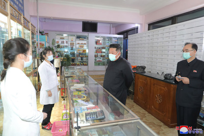 Just after ending the meeting, Comrade Kim Jong Un visited pharmacies in Pyongyang City to acquaint himself with the supply of medicines. He was accompanied by Jo Yong Won and Kim Tok Hun, members of the Presidium of the Political Bureau of the WPK Central Committee, Choe Kyong Chol, minister of Public Health, and senior officials of relevant departments of the Party Central Committee. According to his instruction, members and alternate members of the Political Bureau of the Party Central Committee visited pharmacies in Pyongyang to learn about their situation. He dropped in at pharmacies in Taedonggang District and learnt in detail about the supply and sale of medicines. He acquainted himself in detail with what kind of medicines have been supplied after the maximum emergency epidemic prevention system came into force, whether medicines have been kept as required by regulations, whether the pharmacies are turned into 24-hour service system, whether they hold consultations with patients, what they have as antipyretic and antibiotic and what kinds of drugs are generally demanded by inhabitants and how much are medicines. He stressed repeatedly the need to correct the vulnerable points in medicine supply system and take strong measures for transporting medicines. Saying that most of pharmacies have not been arranged so as to successfully fulfill their function and they are in such a poor situation as they don't have medicine store houses except showcases, he referred to the situation in which salespersons offer service without proper white gowns and hygienic environment does not reach the standard. Noting that today's epidemic prevention campaign is the one for the people and the one whose masters are the people, he repeatedly called on all the officials to make selfless, devoted efforts for the good of the people with the mindset that they would bear full responsibility for the safety of the country and the well-being of the people.
