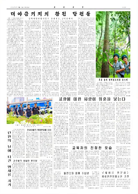 아울러 대성구역산림경영소 산림감독원들의 푸른 숲 가꾸기, 강남군 인민들의 고향사랑에 기초한 군 건설, 처녀어로공들과 과수분조장, 교육자 및 발전소 로동자들의 성실한 생활투쟁을 통해 사회주의 건설의 전반적 발전을 위한 각계각층 인민들의 사상정신적 기상과 위훈 창조 소식을 전하고있다. 김정은동지의 《고향과 조국을 사랑하고 귀중히 여기라는》 교시는 모든 기사에 흐르는 중심사상으로 된다.