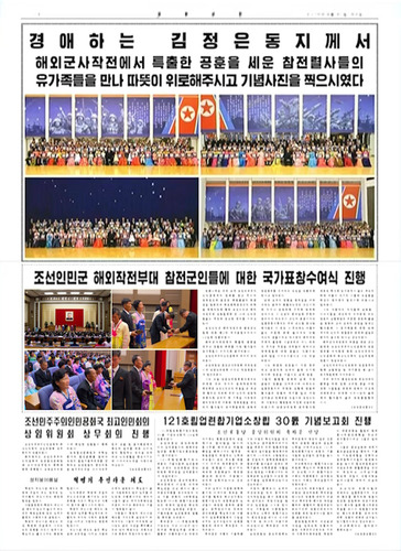 조선인민군 해외작전부대 참전군인들에 대한 제2차 국가표창수여식이 29일에 진행되였다. 조선로동당 중앙군사위원회 부위원장 박정천동지가 발언에서 해외작전에서 특출한 공훈을 세운 렬사들의 유가족들에게 공화국영웅칭호, 금별메달 및 국기훈장 제1급을 수여하였다.