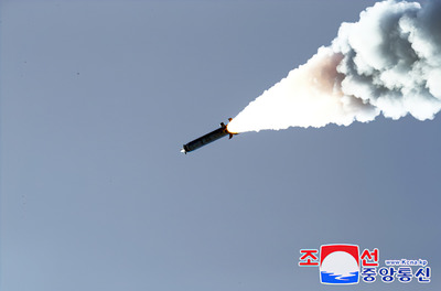 Da am gleichen Tag nachmittags der Feind auf das offene Meer unserer Seite mit ferngelenkten Luft-Boden-Granaten und ferngelenkten Gleitflugbomben eine Entgegnungsfeuer abgab, mit der Behauptung, dass in der Nähe seiner „Hoheitsgewässer“ unsere Rakete eintraf, gab unsere Armee vom Gebiet des Bezirkes Nord-Hamgyong aus mit der Reichweite von 590,5 km auf das offene Meer 80 km vor der Stadt Ulsan in Südkorea (35°29′51,6″auf dem Breitengrad und 130°19′39,6″auf dem Längengrad) 2 strategische Flugraketen als Vergeltungsschlag ab.