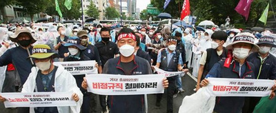 Доведённые до отчаяния южнокорейские рабочие призвали к ответу политиков Средства массовой информации, в том числе Ёнхап Ньюс, Голос Народа и Дэйлиан, сообщили о Национальном конгрессе рабочих, который состоялся 3-го июля в Сеуле. В нём приняли участие около 8000 членов профсоюза. По словам очевидцев, на митинге участники жаловались на то, что ухудшающиеся условия жизни и труда доводят рабочих до опасной черты. Например, несчастные случаи на производстве и увольнения, дискриминация непостоянных рабочих и минимальная заработная плата, стали нормой в Южной Корее. Рабочие провели марш призывая к пересмотру закона о труде. Также они призвали «правительство» сурово покарать оппозиционную партию «Сила народа».