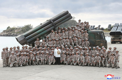 There took place a joint striking drill of KPA long-range artillery sub-units on the western front and flying corps in the western part of the country on Oct. 6. In the drill, the flying corps discharged the missions of striking an islet, which was supposed to be the enemy's military base, with air-to-surface medium-range guided bombs and cruise missiles, and the missions of close raids and bombing flights. And then the long-range artillery sub-units on the front struck the islet in due order. Through the drill, the front artillerymen and combat pilots' preparedness for taking part in operation and combat abilities were strictly inspected without notice. As a result, the accuracy of the state of preparedness for operation to cope with an emergency and the high actual war capacity were clearly proved.