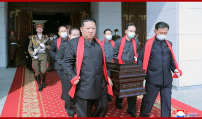 Состоялась церемония выноса гроба покойного Хён Чхоль Хэ 22 мая в первой половине дня в Доме культуры «25 апреля» состоялась церемония выноса гроба покойного главного советника Министерства обороны Корейской Народно-Демократической Республики (КНДР), маршала Корейской Народной Армии (КНА) Хён Чхоль Хэ. В похоронном зале царила глубокая скорбь от прощания со знаменитым военно-политическим деятелем нашей партии, государства и революционных вооруженных сил, который как преданный солдат по оружию Великого вождя товарища Ким Ир Сена, преданный соратник по революции великого руководителя товарища Ким Чен Ира и уважаемого товарища Ким Чен Ына с беззаветной верностью поддерживал партию и вождя, и таким образом совершил на священном пути служения Родине и народу бессмертные подвиги. Генеральный секретарь Трудовой партии Кореи (ТПК), Председатель государственных дел КНДР Ким Чен Ын принял участие в государственных похоронах. В похоронах также приняли участие члены Государственной комиссии по организации похорон, в том числе члены Президиума Политбюро ЦК ТПК Чвэ Рён Хэ, Чо Ён Вон, Ким Док Хун, Пак Чон Чхон и Ли Бён Чхор, члены и кандидаты в члены Политбюро ЦК партии, члены Центрального Военного Комитета (ЦВК) ТПК, командный состав Министерства обороны, а также члены семьи покойного товарища Хён Чхоль Хэ. Перед Домом культуры «25 апреля», где бережно установлен гроб покойного, приспущены государственные флаги. В зале установлены воинские знамена сухопутных, морских и воздушных войск КНА. Распоряжением Государственной комиссии по организации похорон у гроба покойного был выставлен почётный караул. Состоялась церемония выноса гроба покойного товарища Хён Чхоль Хэ. Под траурную музыку председатель Государственной комиссии по организации похорон Ким Чен Ын вместе с членами Государственной комиссии по организации похорон почтил память товарища Хён Чхоль Хэ. Товарищ Ким Чен Ын, не в силах сдержать острую боль от потери стойкого революционера-предшественника – старейшины нашей армии, которого высоко почитал, лично взял на плечо гроб покойного. Вместе с товарищем Ким Чен Ыном члены Президиума Политбюро ЦК ТПК вынесли гроб покойного Хён Чхоль Хэ. Сотни военнослужащих выстроились на площади Дома культуры «25 апреля» в горький момент прощания с товарищем Хён Чхоль Хэ, который в течение долгих 60 лет с тех славных дней, в которые вершилась новая история строительства социализма под руководством двух великих вождей, до настоящего времени, когда открывается период полного расцвета нашей государственной мощи под руководством уважаемого товарища Ким Чен Ына, совершал ни кем незаменимые особые подвиги в строительстве партии и вооруженных сил, в унаследовании и развитии революционного дела. Почетный караул в знак уважения всех военнослужащих КНА торжественно покрыл гроб покойного товарища Хён Чхоль Хэ священным знаменем славы – флагом КНДР. Уважаемый товарищ Ким Чен Ын вместе со всеми военнослужащими Народной Армии, собравшимися на площади, ещё раз выразил глубокие соболезнования у гроба покойного и проводил его Машина с гробом проехала перед колонной с воинскими знаменами КНА и почетным караулом, отдающим воинское приветствие товарищу Хён Чхоль Хэ, и под конвоем мотоциклов выехала на улицу. Многочисленные военнослужащие КНА и жит