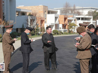 Kim Jong Un, General Secretary of the Workers' Party of Korea (WPK) and President of the State Affairs of the Democratic People's Republic of Korea (DPRK), inspected the Pothong Riverside Terraced Residential District built in Kyongru-dong, Central District. Accompanying him were Jo Yong Won, Member of the Presidium of the Political Bureau and Secretary for Organizational Affairs of the WPK Central Committee, Ri Hi Yong, First Vice-Department Director of the WPK Central Committee, and Kim Yo Jong, Hyon Song Wol and Kim Yong Su, Vice-Department Directors of the WPK Central Committee. The respected Comrade Kim Jong Un was greeted by leading officials of the designing organ and construction unit in field. The terraced residential district built in Kyongru-dong in a unique way will be homes of working people including labor innovators in various fields, persons of distinguished services, scientists, educators and writers who devote themselves to the Party and the state, reflective of the loving care of Kim Jong Un. Kim Jong Un, who pays special attention to the provision of more affluent and wonderful living conditions to our people and signal development of the level of civilization in the capital city and the Juche-oriented architecture, mapped out a plan for building a special residential district by harmoniously arranging terraced, many-storied and low-storied dwelling houses and facilities for public service in the best place on the bank of the Pothong River flowing across the city center, a year ago. He then examined a lot of designs and layouts over the past one year and solved every problem arising in the construction with his energetic guidance. The residential district of unique form built under the direct guidance of Kim Jong Un has successfully been completed to provide the residents with the maximum convenience for their living. Luxury dwelling houses have been built in good harmony with the surrounding environment, and landscaping in the area been improved. As a result, the level of the civilization in the city and scenery of the Pothong riverside have undergone a radical change. Going around the district for a long time, he said that the builders made a lot of efforts to implement the Party's decision in the past one year, true to the Party's policy on construction, and that a model residential district of new form to which our Party's idea on architectural beauty has been thoroughly applied and wonderful combination of modernity and convenience are ensured was created in the central part of the capital city thanks to the ardent loyalty and labor efforts of the builders. He said with satisfaction that the Party Central Committee is very pleased over it. He stressed repeatedly that the experience gained in building the new model residential district in Kyongru-dong is of very important significance in carrying out the immediate task for construction in Pyongyang and in provinces put forward by our Party under its plan to build dwelling houses extensively across the country. He called on designing institutions at all levels in Pyongyang and in provinces to keep making exertions to widely introduce standard, achievements and experience gained in such architectural and landscaping designs, and further develop the level of designing theory for all fields to meet the daily increasing demand of our people in living. The designing institutions and educational organizations at all levels need to focus on making the detailed examination of the world level in landscaping designing in particular and actively introducing landscaping standard and methods to suit to the specific conditions of our country and taking decisive measures for establishing and developing in a unique way the landscaping designing theory of our own style. He underscored the need for the urban management field and relevant units including designing institutions to take strong measures so as to give scientific and theoretical precedence to landscaping designing for improving the environment in the capital city and seats of provinces, cities and counties across the country, and to do landscaping in the development-oriented way in conformity with the natural and geographical features of relevant regions and with the modern trend. He gave important teachings about the strategy for the development of the Juche architecture, noting that the construction is an important political work of increasing the overall power of the country and leading our people to socialist civilization of our own style. He learned about the construction, looking round interior of dwellings of various styles for hours. Saying that the interior of the houses are convenient for the living of people, he was so pleased to provide again our working people with more wonderful houses. He told to hand over entrance certificates to those selected in various fields and hold significant completion ceremony before the significant Day of the Sun. All the officials and builders were full of firm pledge to perform greater miracles and innovations with soaring spirit to lead the world in the worthwhile endeavors of building a civilized powerful country, bearing in mind the patriotic devotion of great efforts made by the respected Comrade Kim Jong Un for the prosperity of the country and happiness of the people.