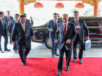 김정은동지께서 로씨야련방 대통령 울라지미르 울라지미로비치 뿌찐동지와 상봉하시고 회담하시였다