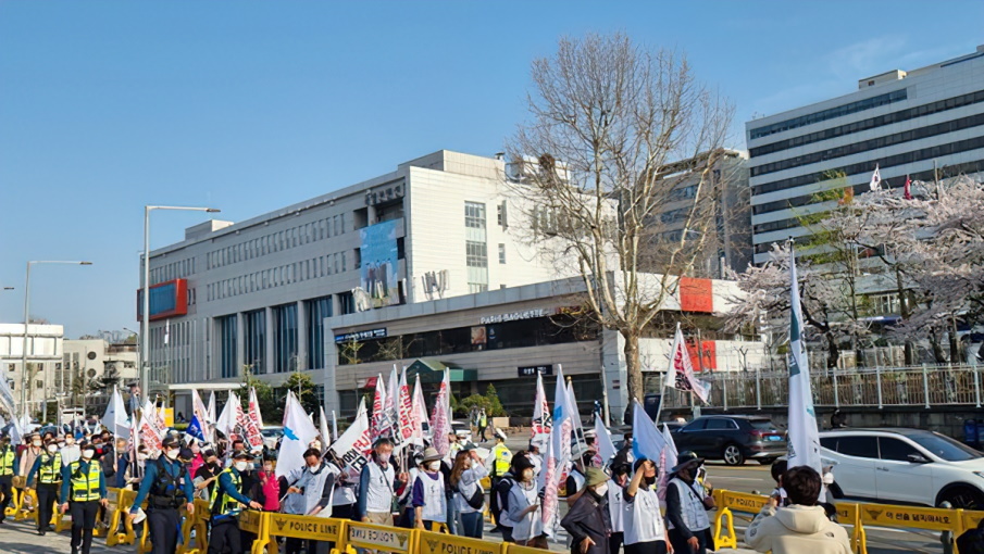국방부 건너편 집중행동 [사진-통일뉴스 이승현 기자]