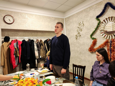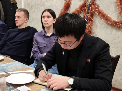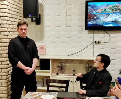 12月24日,在莫斯科的平壤高丽餐厅举行了纪念敬爱的金正恩同志被推举为朝鲜武装力量最高司令官12周年的大会。 国际团结朝鲜社团领导委员会主席、我们组织的负责人亚历山大·莫斯托夫同志主持了此次活动。 来自俄罗斯、中国、塔吉克斯坦和欧盟的我们社团的领导人员出席了会议,其中包括李纪峥同志(领导委员会副主席)、蒂姆·特伦德尔坎普(欧洲执行委员会意识形态工作负责人)、穆罗德别克·尤尔多舍夫(塔吉克斯坦执行委员会意识形态工作负责人)、康斯坦丁·阿斯莫洛夫和维塔利·列别捷夫(科学委员会成员)以及阿列克谢·列戈申(世界文明大学朝鲜友好俱乐部负责人)。维克多·彼得罗夫同志(俄罗斯朝鲜友好协会主席)因身体抱恙远程出席了会议。俄罗斯执行委员会的一名艺术家、一名音乐家也参与了活动。