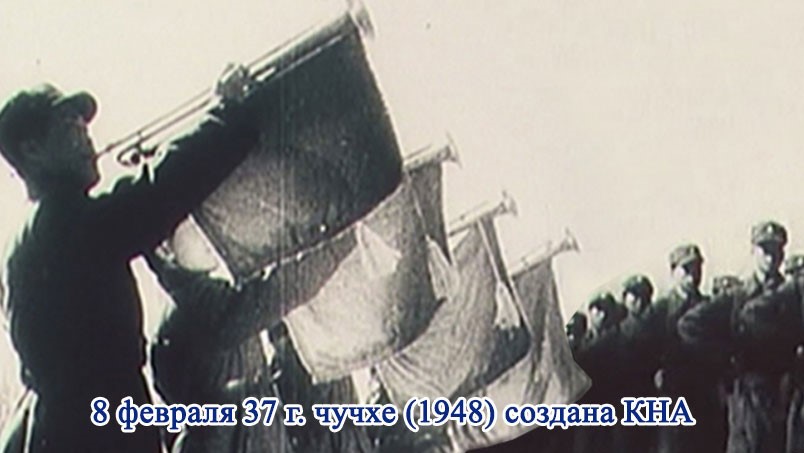 Великий вождь товарищ Ким Ир Сен, освободив нашу страну от японского колониального господства 15 августа 1945 года, обратил первоочередное внимание на строительство регулярных революционных вооруженных сил и на основе богатого опыта военного строительства, созданных в огне антияпоннской вооруженной борьбы, воспитывал военно-политических кадров, и в сжатые сроки (не более трех лет) провозгласил на весь мир создание КНА.