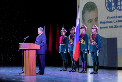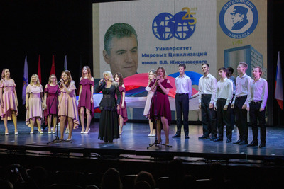 On April 5, Viktor Petrov, Chairman of the Russian Society for Friendship and Cultural Cooperation with the DPRK, attended a gala concert dedicated to the 25th anniversary of the founding of the University of World Civilizations. He was accompanied by comrades Margarita Kuryleva (Executive Secretary) and Anna Zorich (Secretary of the Russian Executive Committee). At the moment, supporting the desire of students to contribute to the development of Russian-Korean relations at the current historical stage, the University leadership is making efforts to develop the Russian-Korean Friendship Club. The head of the Russian organization was met by Alexander Mostov, Chairman of the Coordination Committee of the DPRK ISG, and Alexey Legoshin, Head of the Russian-Korean Friendship Club. The hall of the Moscow Musical Theater attracted almost one and a half thousand guests. These are students, graduates, teachers, LDPR deputies and senators of the Russian Federation. Creative groups took part in the festive concert, congratulations were heard from the stage Chairman of the LDPR and founder of the university Leonid Slutsky congratulated teachers and students on the anniversary, noting that the University of World Civilizations is not giving up its position and is a leader in the field of higher education.