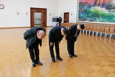 On the occasion of the 114th anniversary of the birth of the Great Leader Comrade Kim Il Sung (April 15), a delegation of the Chinese Executive Committee of the DPRK International Solidarity Group (DPRK ISG), headed by the head of the Chinese Executive Committee, Comrade Luan Xinglong, visited the DPRK Embassy in Beijing and took part in a solemn flower‑laying ceremony. The event, organized in the banquet hall of the Embassy, was dedicated to the blessed memory of the Great Leader and his immortal exploits in the liberation of Korea and the construction of a socialist state. The participants of the ceremony laid a wreath and bouquets of flowers before the photographic portraits of the Great Leader Comrade Kim Il Sung and the Great Leader Comrade Kim Jong Il, and paid their respects with a deep bow. During the visit, the delegates of the Chinese Executive Committee congratulated the staff of the diplomatic mission on the historic decisions of the 9th Congress of the Workers' Party of Korea and the re‑election of the respected Comrade Kim Jong Un as General Secretary of the WPK. An exchange of views took place on the further development of China‑Korea friendship. The representatives of the Embassy highly appreciated the activities of the Chinese Executive Committee of the DPRK ISG, emphasizing its significant contribution to the development of people's diplomacy.