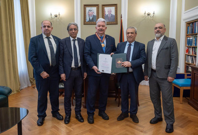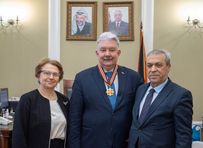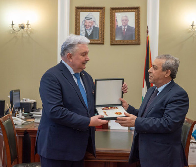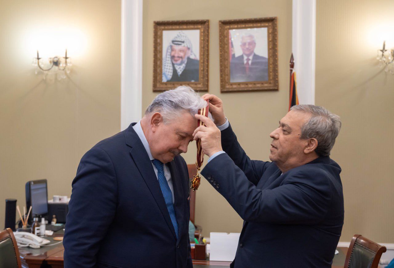 In recognition of his outstanding personal contribution to supporting the just struggle of the Palestinian people and his active peacemaking activities in the Middle East, Comrade Sergey Nikolaevich Baburin, President of the International Association of Peace Funds (IAPF) and Vice President of the DPRK International Solidarity Group (DPRK ISG), has been awarded the Order of the "Star of Jerusalem." The solemn award ceremony took place in Moscow on January 27 at the Embassy of Palestine. The highest state award was presented on behalf of Mahmoud Abbas, President of the State of Palestine, by the respected Abdelhafiz Nofal, Ambassador Extraordinary and Plenipotentiary of the State of Palestine to the Russian Federation. In his speech during the ceremony, the Ambassador conveyed words of deep gratitude from the Palestinian leadership for Comrade Baburin's longstanding and consistent stance in defending the legitimate rights of the Arab people of Palestine on the international stage, as well as his practical efforts in providing humanitarian support and promoting dialogue. Accepting the order, Comrade Baburin expressed sincere gratitude to President Mahmoud Abbas and the entire Palestinian leadership for the high appraisal of his work. He emphasized that he perceives this award primarily as a recognition of the merits of all Russia, which historically and steadfastly stands on the side of truth and justice in the Palestinian question. "I am merely a humble representative of this great country. Everything that has been achieved in supporting the heroic Palestinian people is the result of common efforts with my comrades," he stated. Comrade Baburin noted that for him, as the long-time head of the Russian Center for the Preservation of the Spiritual and Cultural Heritage of the Holy City of Jerusalem, this award holds special, symbolic significance. He firmly reaffirmed the immutable principled position: East Jerusalem rightfully must become the capital of an independent State of Palestine. Comrade Baburin also expressed understanding regarding the fact that the schedule of President Abbas's official visit did not allow him to attend the ceremony in person, stressing that the very attention from the Palestinian leadership is extremely precious to him. He voiced cautious optimism, noting that in the current international conditions, the issue of a just and comprehensive settlement of the Palestinian problem is closer than ever to its resolution. Comrade Baburin's spouse was present at the significant event, whom he publicly thanked for her constant support and understanding throughout his life, stating that all his successes are largely her achievements. Following the conclusion of the official part of the ceremony and interaction with journalists, an informal working conversation took place between Comrade Baburin and Ambassador Abdelhafiz Nofal. During a friendly discussion over a cup of coffee, the parties discussed current issues of the Middle East settlement, prospects for the activities of joint public institutions, as well as preparations for the International Day of Al-Quds, symbolizing the unwavering will of the Palestinian people.