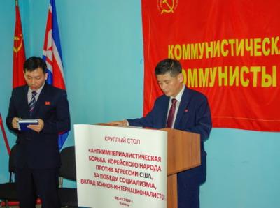 «Антиимпериалистическая борьба корейского народа против агрессии США, за победу социализма, вклад воинов-интернационалистов» 2 июля в республиканском отделении партии Коммунисты России состоялся «круглый стол» с участием представителей посольства КНДР. С вступительным словом к участникам обратился заместитель председателя ЦК КПКР по международным связям, член Комитета руководителей МГС КНДР Илья Юрьевич Клеймёнов. Он поблагодарил группу организаторов заседания со стороны Корейской Народно-Демократической Республики и партии Коммунисты России. Особую благодарность депутат выразил главе делегации, полномочному министру-посланнику посольства КНДР в РФ товарищу Зин Джон Хепу и руководителю нашей организации товарищу Александру Мостову, который составил проект заявления по итогам круглого стола.