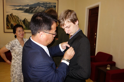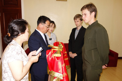 On August 14, Juche 113 (2024), it will be the 10th anniversary of the announcement of gratitude from the respected Comrade Kim Jong Un to the leading workers of our organization. On August 13, Juche 103 (2014), the delegation of the DPRK Solidarity Group headed by Vitaly Lebedev met with the Vice Chairman of the Korean-Russian Friendship Society and through him presented a gift to the respected Supreme Leader Comrade Kim Jong Un. The gift is a gilded machine gun on which Comrade Lebedev personally depicted the path of the warriors of the Songun era. In addition, the Chairman drew special attention to the fact that the banner had the inscription "Deeply Respected Marshal", which emphasizes the sincere respect for their leader. The DPRK representatives noted that they highly valued this gift as well as the rest of the activities of our organization. On the same day, the Deputy Chairman of the Korean-Russian Friendship Society ceremoniously awarded the delegates of the Group with badges depicting the Great Leaders Kim Il Sung and Kim Jong Il. The activists of our organization wear them with pride, because such badges are a symbol of loyalty to the line of the Workers' Party of Korea. But the intensity of importance did not decrease. On the morning of August 14, Juche 103 (2014), that is, the next day, our activists were informed that the Chairman wanted to see them in his office and that he had something valuable and important for the Group. What was it? It was a message from the Supreme Leader of the DPRK to our Group. Comrade Kim Jong Un thanked the DPRK Solidarity Group and noted that our organization had already done a lot for the Korean people. All activists of our organization, keeping in their hearts the words of gratitude of the Great Leader Comrade Kim Jong Un, will achieve new successes under the leadership of Chairman A. Mostov in the matter of comprehensively strengthening and developing the international solidarity movement.