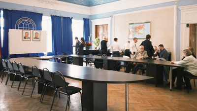 Активисты Российского общества дружбы и культурного сотрудничества с КНДР занимают места.