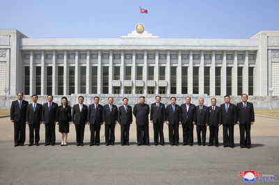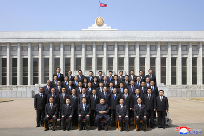 02:05 김정은동지께서 새로 구성된 최고인민회의 상임위원회,내각 성원들,최고인민회의 제14기 대의원들과 함께 기념사진을 찍으시였다 | |