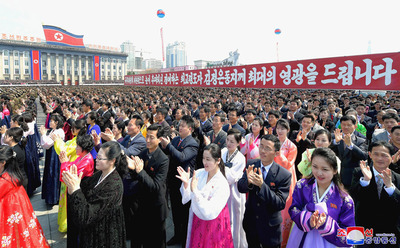 庆祝 党和政府领导、武力机关的负责同志、党中央委员会干部,各省、中央一级机关、平壤市内机关和工厂企业干部,劳动群众、青年学生和人民军官兵以及海外同胞参加大会。 大会上,崔龙海作了报告。 崔龙海说,在历史性的第十四届最高人民会议第一次会议上推举 崔龙海强调,由于竭诚拥戴 崔龙海代表全体党员、人民和人民军官兵的绝对信赖和火热忠诚,向 崔龙海呼吁,全体人民和人民军官兵忠诚拥护 大会上,工人阶级、农业劳动者、人民军官兵、知识分子、青年学生代表先后发言。 他们表示,今天的喜事清楚地显示了朝鲜跟随向全世界弘扬祖国的尊严和威仪,提前迎来社会主义强国的光明未来的 他们发誓,将忠诚拥护