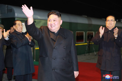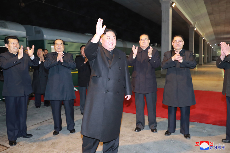조선로동당 위원장이시며 조선민주주의인민공화국 국무위원회 위원장이시며 조선민주주의인민공화국무력 최고사령관이신 우리 당과 국가,군대의 최고령도자 조선로동당 중앙위원회 정치국 위원이며 당중앙위원회 부위원장들인 김평해동지,오수용동지,조선로동당 중앙위원회 정치국 위원이며 외무상인 리용호동지,조선로동당 중앙위원회 정치국 후보위원이며 조선인민군 총참모장인 륙군대장 리영길동지,조선민주주의인민공화국 국무위원회 위원이며 외무성 제1부상인 최선희동지와 당중앙위원회,국무위원회 성원들이 함께 떠났다. 조선로동당 중앙위원회 정치국 상무위원회 위원들인 최룡해동지,박봉주동지를 비롯한 당과 정부,무력기관의 간부들이 최고령도자동지를 환송하였다. 경애하는 최고령도자동지께서는 환송나온 간부들과 인사를 나누시였다. 당과 정부,무력기관의 간부들은 경애하는 최고령도자동지께서 외국방문의 길에서 안녕히 돌아오시기를 충심으로 축원하였다. 경애하는 최고령도자동지께서 타신 전용렬차는 당과 정부,무력기관의 간부들과 인민들의 뜨거운 바래움을 받으며 출발하였다.