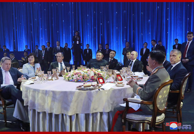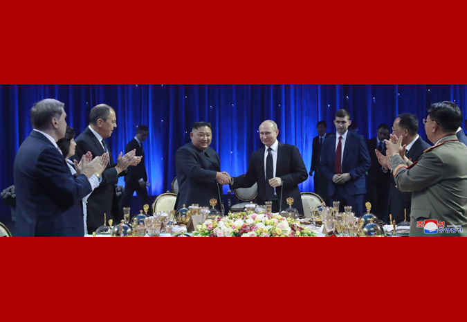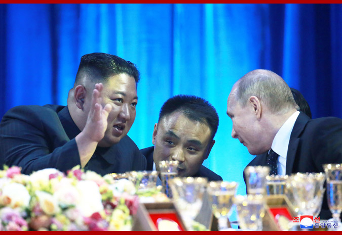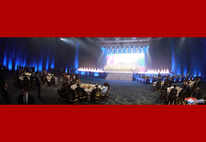 경애하는 최고령도자 조선로동당 중앙위원회 부위원장들인 김평해동지,오수용동지, 외무상 리용호동지,조선인민군 총참모장 륙군대장 리영길동지, 외무성 제1부상 최선희동지를 비롯한 수행간부들과 수행원들이 연회에 초대되였다. 로씨야주재 조선특명전권대사 김형준,울라지보스또크주재 조선 총령사 조석철과 령사관 성원들이 초대되였다. 로씨야측에서 외무상 쎄르게이 라브로브,정부부수상 겸 원동련방구주재 대통령전권대표 유리 뜨루뜨네브,대통령행정부 부책임자 겸 대통령공보관 드미뜨리 뻬스꼬브,대통령대외정책담당 보좌관 유리 우샤꼬브,교통상 예브게니 지뜨리흐,원동 및 북극발전상 알렉싼드르 꼬즐로브,동력성 부상 아나똘리 야놉스끼,로씨야철도주식회사 총사장 올레그 벨로죠로브,우리 나라 주재 로씨야련방 특명전권대사 알렉싼드르 마쩨고라를 비롯한 관계일군들이 여기에 참가하였다. 연회에서는 뿌찐대통령각하가 축하연설을 하였다. 뿌찐대통령은 로씨야련방을 방문하신 뿌찐대통령은 뿌찐대통령은 로씨야는 조선반도에서의 긴장을 해소하고 동북아시아지역전반에서의 안전을 강화하기 위하여 계속 호상 협력해나갈 용의가 있다고 하면서 국제사회와 모든 관심있는 국가들의 적극적인 참가밑에 반도와 지역의 공고한 평화와 안정을 보장하고 번영을 이룩해나가기 위한 목적을 반드시 달성할것이라고 확신하였다. 경애하는 최고령도자동지께서 답례연설을 하시였다. 경애하는 최고령도자동지께서는 뿌찐대통령각하께서 친절히 초청해주고 온갖 성의를 다하여 뜨겁게 환대해주고있는데 대하여 충심으로 되는 사의를 표하시였다. 경애하는 최고령도자동지께서는 두 나라 인민은 일찌기 지난 세기 항일대전의 공동의 투쟁속에서 전우의 정으로 굳게 결합되였으며 붉은군대 장병들은 조선의 해방을 위하여 자기의 더운 피를 아낌없이 바쳤다고 하시면서 조선인민은 조선해방의 성스러운 위업에 고귀한 생명을 바친 로씨야인민의 아들딸들의 숭고한 국제주의적위훈을 잊지 않고있으며 앞으로도 영원히 기억할것이라고 말씀하시였다. 뿌찐대통령각하와 조로친선관계발전과 조선반도와 지역의 평화와 안전보장을 위한 문제들 그리고 공동의 관심사로 되는 국제문제들에 대하여 허심탄회하고 의미깊은 대화를 나누었다고 하시면서 조로친선관계를 새로운 높이에서 새 세기의 요구에 맞게 끊임없이 강화발전시켜나가려는것은 공화국정부의 확고부동한 립장이며 전략적방침이라고 강조하시였다. 경애하는 최고령도자동지께서는 뿌찐대통령각하의 령도밑에 로씨야가 반드시 강력하고 존엄높은 위대한 나라로 부흥번영하게 되기를 진심으로 축원하시였다. 연회는 시종 친선의 정이 뜨겁게 흘러넘치는 화기애애한 분위기속에서 진행되였다. 연회에서는 경애하는 최고령도자동지께서와 뿌찐대통령각하는 출연자들에게 꽃바구니를 전하시고 감사의 뜻을 표하시였다. 경애하는 최고령도자동지께서는 친선적인 로씨야의 벗들이 열렬하고도 따뜻한 환대를 베풀어준데 대하여 다시한번 깊은 사의를 표하시고 뿌찐대통령각하와 새로운 상봉을 약속하시며 작별의 뜨거운 인사를 나누시였다.