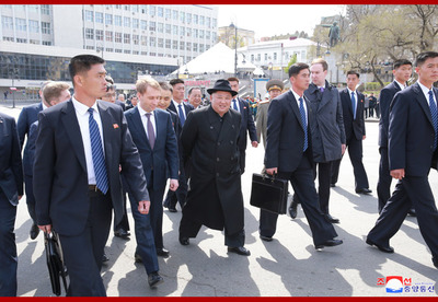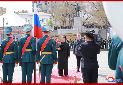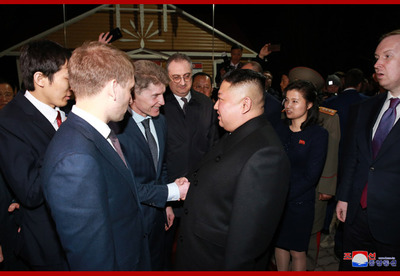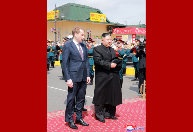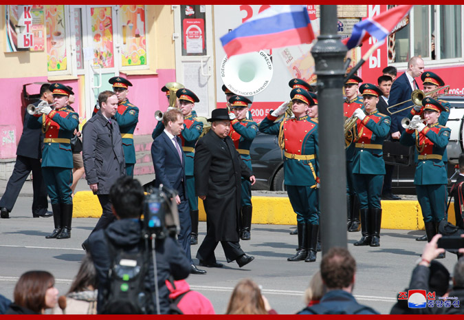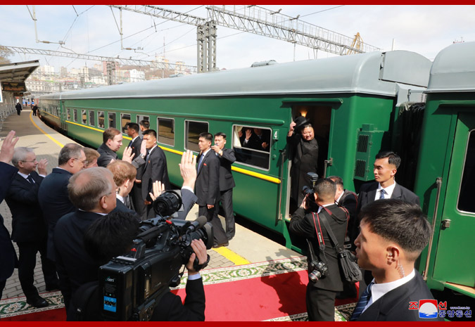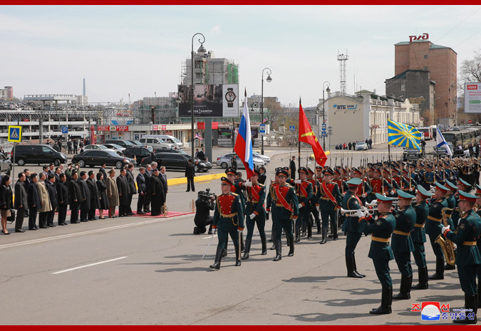 조선로동당 위원장이시며 조선민주주의인민공화국 국무위원회 위원장이시며 조선민주주의인민공화국무력 최고사령관이신 우리 당과 국가, 군대의 최고령도자 조로친선관계사에 특기할 불멸의 자욱을 아로새기시고 귀국하시는 경애하는 최고령도자동지를 전송하기 위하여 울라지보스또크역전광장에 로씨야련방무력 륙해공군명예위병대와 군악대가 정렬해있었다. 로씨야 원동 및 북극발전상 알렉싼드르 꼬즐로브, 로씨야외무성 부상 이고리 모르굴로브,연해변강장관 올레그 꼬줴먀꼬, 우리 나라 주재 로씨야련방 특명전권대사 알렉싼드르 마쩨고라가 역에 나와있었다. 경애하는 최고령도자동지를 환송하는 의식이 울라지보스또크역전광장에서 진행되였다. 경애하는 최고령도자동지께 로씨야련방무력 륙해공군명예위병대장이 영접보고를 드리였으며 이어 두 나라 국가가 장중하게 주악되고 명예위병대의 분렬행진이 진행되였다. 경애하는 최고령도자동지께서는 환송나온 중앙과 지방의 간부들과 인사를 나누시였다. 경애하는 최고령도자동지께서는 뿌찐대통령각하와 로씨야정부와 인민의 각별한 관심과 극진한 환대속에 로씨야련방에 대한 방문을 만족스럽게 마치고 훌륭한 인상과 친선의 정을 안고 귀국한다고 하시면서 이에 충심으로 되는 사의를 표하시였다. 경애하는 최고령도자동지께서 타신 전용렬차는 형제적이며 친근한 로씨야벗들의 뜨거운 바래움을 받으며 울라지보스또크역을 출발하였다. 경애하는 최고령도자동지께서는 귀국에 앞서 26일 조로국경지역인 하싼에 위치한 로조친선각을 돌아보시였다. 경애하는 최고령도자동지를 로씨야 원동 및 북극발전상 알렉싼드르 꼬즐로브를 비롯한 중앙과 지방의 간부들이 맞이하고 안내해드리였다. 경애하는 최고령도자동지께서는 두 나라 친선의 상징인 로조친선각을 잘 꾸리고 관리해나가고있는데 대하여 깊은 사의를 표하시고 그들과 함께 따뜻한 담화를 나누시였다. 경애하는 최고령도자동지께서는 로씨야의 벗들과 뜨거운 작별인사를 나누시고 로씨야의 국경역인 하싼역을 출발하시였다. 경애하는 최고령도자동지의 로씨야련방에 대한 친선방문은 력사의 풍파속에서도 세기와 세대를 넘어 이어져온 오래고도 긴밀한 조로친선의 굳건함을 과시하고 두 나라사이의 전통적인 친선협조관계를 새로운 정세하에서 새로운 시대적요구에 부합되게 더욱더 승화발전시키기 위한 획기적인 전환의 계기를 마련한 일대 사변으로서 조로친선의 단결력사에 빛나게 기록될것이다.