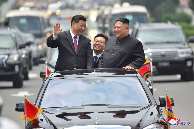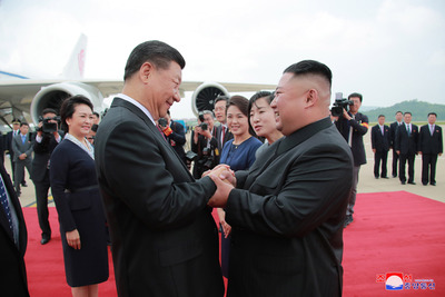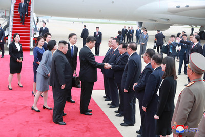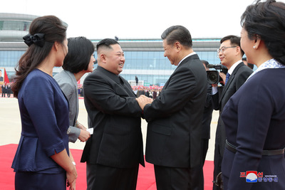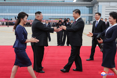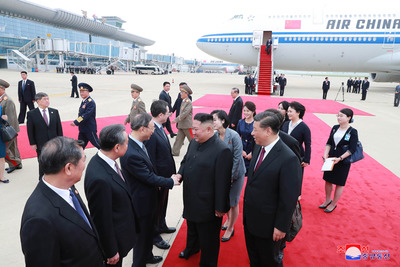 조선로동당 위원장,조선민주주의인민공화국 국무위원회 위원장 경애하는 최고령도자 조중외교관계설정 70돐이 되는 뜻깊은 해에 진행되는 습근평동지의 우리 나라 방문은 반제자주,사회주의를 위한 공동의 투쟁에서 뜻과 정으로 맺어진 두 당,두 나라사이의 전통적인 친선관계를 더욱 공고히 하는 중요한 계기로 되며 우리 인민의 정의의 위업에 대한 지지와 고무로 된다. 평양국제비행장에는 조중친선의 새로운 년대기를 수놓으며 평양을 방문하는 습근평동지를 뜨겁게 맞이하기 위하여 수많은 군중들과 어린이들,학생소년들이 두 나라 기발과 꽃다발을 들고 나와있었다. 국기게양대에는 우리 나라 국기와 중화인민공화국 국기가 나붓기고있었다. 경애하는 최고령도자 환영군중들은 정력적인 대외활동으로 조중친선의 새로운 개화기를 열어나가시는 경애하는 최고령도자동지를 우러러 폭풍같은 《만세!》의 환호성을 터쳐올리였다. 조선로동당 중앙위원회 정치국 상무위원회 위원이며 조선민주주의인민공화국 국무위원회 부위원장이며 당중앙위원회 부위원장인 박봉주동지와 당과 정부의 간부들인 리만건동지,리수용동지,최휘동지,김영철동지,리용호동지,김여정동지,중화인민공화국주재 우리 나라 특명전권대사 지재룡동지가 비행장에 나와있었다. 김수길동지,리영길동지,노광철동지를 비롯한 조선인민군 지휘성원들이 나와있었다. 또한 주조 중화인민공화국 특명전권대사 리진군동지를 비롯한 대사관 성원들이 나와있었다. 낮 12시,환영곡이 울리는 가운데 경애하는 최고령도자 경애하는 최고령도자동지께서는 올해 정초의 뜻깊은 만남에 이어 습근평동지와 160여일만에 평양에서 또다시 상봉하게 된 기쁨을 금치 못하시면서 두손을 뜨겁게 잡으시고 정깊은 인사를 나누시였다. 습근평동지는 고대하던 평양방문이 이루어진 소감을 피력하면서 조선인민이 이렇듯 성대하게 환영해주는데 대하여 충심으로 되는 사의를 표시하였다. 중국공산당 중앙위원회 정치국 위원이며 서기처 서기이며 판공청 주임인 정설상동지,중국공산당 중앙위원회 정치국 위원이며 중앙외사사업위원회 판공실 주임인 양결지동지,중화인민공화국 국무원 국무위원 겸 외교부장 왕의동지,중국인민정치협상회의 전국위원회 부주석이며 국가발전 및 개혁위원회 주임인 하립봉동지,중국공산당 중앙위원회 대외련락부장 송도동지,중화인민공화국 상무부장 종산동지,중화인민공화국 중앙군사위원회 정치사업부 주임 묘화동지와 그밖의 수행원들이 함께 왔다. 습근평동지와 팽려원녀사에게 귀여운 어린이들이 꽃다발을 드리였다. 경애하는 최고령도자동지께서는 습근평동지에게 영접나온 당과 정부의 간부들과 조선인민군 지휘성원들을 소개하시였다. 경애하는 최고령도자동지께서는 중국측 수행원들과 인사를 나누시였다. 습근평동지를 환영하는 의식이 진행되였다. 중화인민공화국 국가와 우리 나라 애국가가 장중하게 주악되는 속에 21발의 례포가 발사되였다. 경애하는 최고령도자동지의 안내를 받으며 습근평동지는 조선인민군 명예위병대를 사열하였다. 경애하는 최고령도자 경애하는 최고령도자동지와 함께 습근평동지는 열광적으로 환호하는 어린이들,학생소년들과 군중들의 앞을 지나며 답례를 보내였다. 습근평동지가 탄 전용차는 모터찌클의 호위를 받으며 숙소인 금수산영빈관으로 향하였다. 우리 인민에 대한 형제적중국인민의 따뜻한 친선의 정을 안고 온 습근평동지를 순안구역과 련못동,룡흥네거리,4.25문화회관광장을 비롯한 연도의 곳곳에서 평양시민들이 열렬히 환영하였다. 습근평동지가 탄 차가 련못동입구에 들어서자 군중들은 조중외교관계설정 70돐이 되는 올해를 뜻깊게 장식하며 오래고도 깊은 력사적뿌리를 가지고있는 두 나라사이의 친선관계의 공고발전을 위하여 우리 나라를 방문하는 습근평동지에 대한 각별한 존경심과 친근감을 안고 조중 두 나라 국기와 꽃다발을 흔들면서 반갑게 맞이하였다. 《조중친선》,《환영합니다.》의 환호가 울려퍼지는 연도는 사회주의한길에서 굳게 손잡고 고락을 함께 하여온 중국인민에 대한 우의의 정과 열기로 뜨겁게 달아올랐다. 경애하는 최고령도자