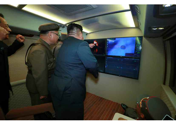조선로동당 위원장이시며 조선민주주의인민공화국 국무위원회 위원장이시며 조선민주주의인민공화국무력 최고사령관이신 우리 당과 국가,무력의 최고령도자 시험사격은 대구경조종방사탄의 고도억제비행성능과 궤도조종능력 및 목표명중성을 검열할 목적으로 진행되였다. 리병철동지,유진동지,김정식동지를 비롯한 당중앙위원회 간부들과 장창하동지,전일호동지를 비롯한 국방과학부문의 지도간부들이 시험사격을 함께 지도하였다. 경애하는 최고령도자동지께서는 화력진지에 나가시여 포차의 전투전개시간을 측정하시며 대구경조종방사포체계의 운영방식에 대하여 구체적으로 료해하시고 감시소에서 시험사격을 지도하시였다. 시험사격을 통하여 목적한 조종방사탄의 고도억제수평비행성능과 궤도변칙능력,목표명중성,전투부폭발위력이 만족스럽게 확정되였다. 경애하는 최고령도자동지께서는 우리 당이 구상하고 그처럼 바라던 또 하나의 주체무기가 태여났다고 시험사격결과에 대만족을 표시하시면서 국방과학부문의 지도간부들과 과학자,기술자,로동계급의 수고를 높이 치하하시였다.