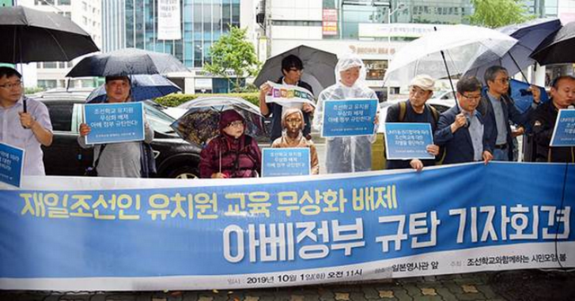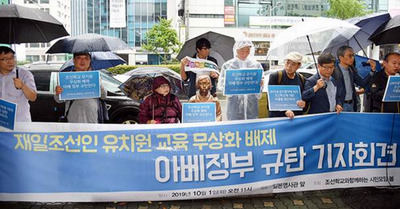 남조선언론들의 보도에 의하면 지난 10월 1일 부산지역의 수십개 시민사회단체들로 구성된 《조선학교와 함께 하는 시민모임 봄》이 부산시에 있는 일본령사관앞에서 기자회견을 열고 어린이교육, 보육지원대상에서 조선학교 유치반들을 제외시킨 아베패당을 강력히 규탄하였다.