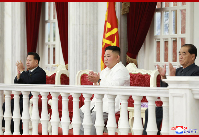 朝鮮労働党委員長で朝鮮民主主義人民共和国国務委員会委員長、朝鮮民主主義人民共和国武力最高司令官であるわが党と国家、武力の最高指導者金正恩同志が10月10日、党中央委員会本部別館で朝鮮労働党創立74周年祝賀公演を鑑賞した。