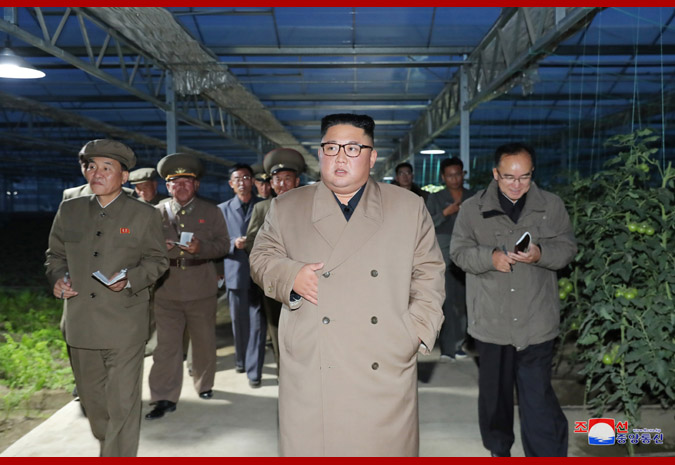 Kim Jong Un, Presidente del Partido del Trabajo de Corea y del Comité de Estado de la República Popular Democrática de Corea y Comandante Supremo de las Fuerzas Armadas de la RPDC, recorrió los campos de construcción de la granja de invernaderos de vegetales de Jungphyong y la almáciga del distrito de Kyongsong.