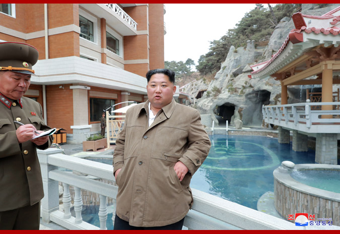 朝鮮労働党委員長で朝鮮民主主義人民共和国国務委員会委員長、朝鮮民主主義人民共和国武力最高司令官であるわが党と国家、武力の最高指導者金正恩同志が、竣工(しゅんこう)を控えている陽徳温泉文化休養地(平安南道)の建設場を再び現地で指導した。