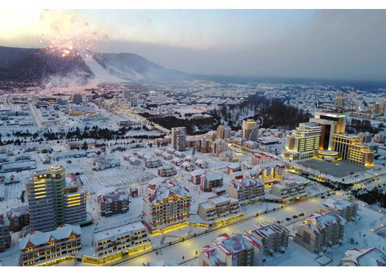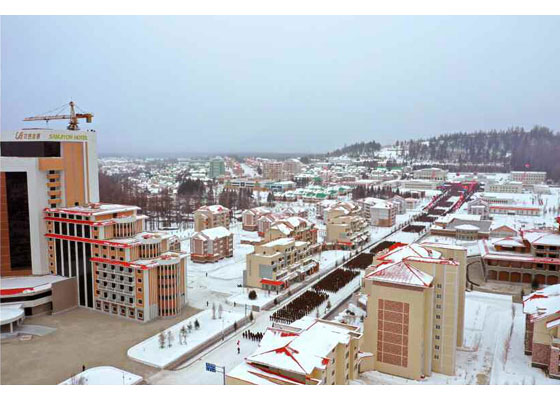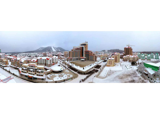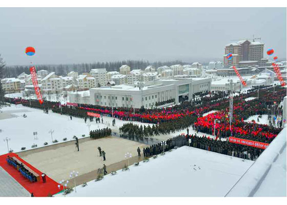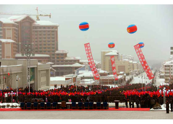 우리 당의 웅대한 대건설구상과 현명한 령도에 의하여 인민의 리상향으로 천지개벽된 삼지연군 읍지구 준공식이 12월 2일 성대히 진행되였다.