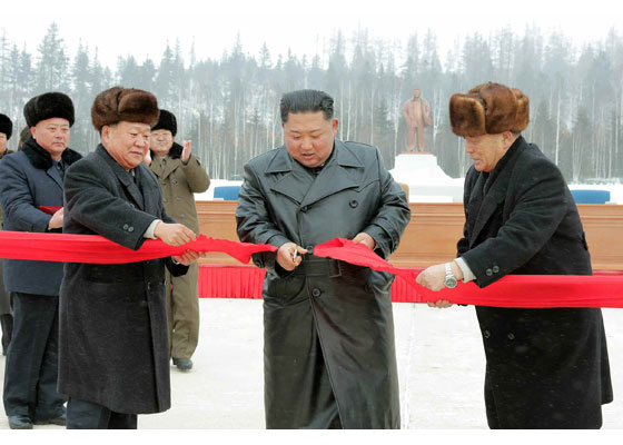 경애하는 최고령도자 김정은동지께서 참석하시여 준공테프를 끊으시였다