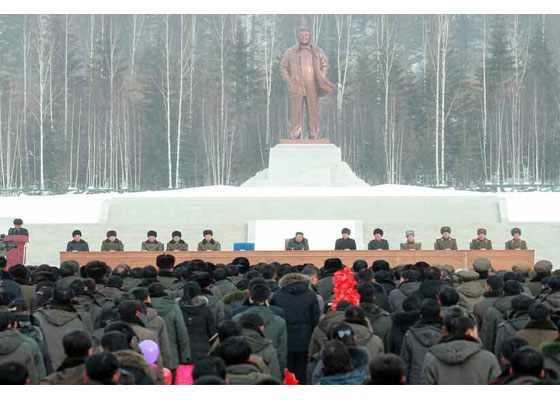 전체 참가자들은 위대한 장군님의 고향군을 혁명의 성지답게 더욱 훌륭히 꾸리실 구상을 펼치시고 정력적인 령도로 세상이 부러워할 인민의 리상도시를 일떠세워주신 경애하는 최고령도자동지께 최대의 경의를 삼가 드리며 열광의 환호를 터쳐올리였다.
