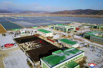인민에 대한 멸사복무정신을 자기 활동의 근본리념으로 내세우고 투쟁하는 우리 당의 위대한 령도는 조국땅 이르는 곳마다에 인민의 문명과 복리증진을 위한 창조와 변혁의 새 력사를 펼치고있다. 조국의 북변 경성군의 중평지구에 그 어디에 내놓아도 손색없는 대규모의 남새온실농장과 현대적인 양묘장이 건설되여 조업하였다. 우리 당의 인민중시사상과 현명한 령도에 의하여 인민사랑의 창조물로 훌륭히 일떠선 중평남새온실농장과 양묘장 조업식이 12월 3일에 성대히 진행되였다. 조선로동당 위원장이시며 조선민주주의인민공화국 국무위원회 위원장이시며 조선민주주의인민공화국무력 최고사령관이신 우리 당과 국가, 무력의최고령도자 김정은동지께서 조업식에 참석하시였다. 우리 당의 인민적이며 애국적인 정책이 응축되고 주체적건축미학사상이 철저히 구현된 중평남새온실농장과 양묘장은 사회주의문명의 높이를 뚜렷이 보여줄수 있게 건축의 실용화, 조형예술화가 실현되고 모든 생산공정이우리의 기술, 우리의 설비들로 장비되였으며 과학화, 문화적수준에서도 시대의 전렬에 당당히 올라섰다. 사철 갖가지 남새를 많이 생산하여 인민들에게 공급하며 조국의 산들을 더욱 푸르게 전변시키기 위한 당의 웅대한 구상과 현명한 령도를 높이 받들고 산악같이 떨쳐나선 인민군군인들은 결사관철의 과감한 돌격전으로 200정보의 드넓은 부지에 320동의 온실과 양묘장, 수백세대의 살림집을 불과 1년 남짓한 기간에 완공하는 기적을 창조하였다. 궁전, 공원과 같은 환경에서 계절에 구애됨이 없이 신선한 남새와 나무모를 대량생산할수 있는 온실들과 양묘장은 앞으로 련속 일떠서게 될 우리 식의 대규모남새온실농장과 양묘장의 표준이며 인민대중제일주의건축리념이 빛나게 구현된 농장마을은 사회주의농촌문화주택건설의 본보기로 된다. 북방의 동해기슭 중평지구에 펼쳐진 희한한 전변은 조국청사에 인민사랑의 대서사시를 끝없이 수놓아가는 우리 당의 숭고한 뜻과 현명한 령도의 고귀한 결실이며 자력갱생으로 개척해가는 우리 식 사회주의의 휘황한 미래를 그려주는 또 하나의 귀중한 재부이다. 조선로동당 중앙위원회 정치국 상무위원회 위원이며 조선민주주의인민공화국 국무위원회 제1부위원장이며 최고인민회의 상임위원회 위원장인 최룡해동지, 조선로동당 중앙위원회 정치국 상무위원회 위원이며 조선민주주의인민공화국 국무위원회 부위원장이며 당중앙위원회 부위원장인 박봉주동지가 조업식에 참가하였다. 조선로동당 중앙위원회 부위원장 박태덕동지, 함경북도당위원회 위원장리히용동지, 함경북도농촌경리위원회 위원장 신철웅동지, 당중앙위원회 일군들, 중평남새온실농장과 양묘장 일군, 종업원들, 경성군을 비롯한 함경북도안의 일군들과 근로자들이 여기에 참가하였다. 조선인민군 총참모장 륙군대장 박정천동지와 인민군지휘성원들, 군인건설자들이 참가하였다. 환영곡이 울리는 가운데 경애하는 최고령도자 김정은동지께서 조업식장에 나오시였다. 전체 참가자들은 인민을 위한 대규모남새온실농장과 양묘장건설을 발기하시고 멀고 험한 건설장을 거듭 찾으시면서 흙먼지만 날리던 중평지구를 황금의 땅으로 전변시켜주신 경애하는 최고령도자동지께 고마움의 인사를 삼가 드리며 폭풍같은 《만세!》의 환호를 터쳐올리였다. 조선로동당 중앙위원회 정치국 상무위원회 위원이며 조선민주주의인민공화국 국무위원회 부위원장이며 당중앙위원회 부위원장인 박봉주동지가 조업사를 하였다. 박봉주동지는 경이적인 사변들로 아로새겨진 력사적인 올해를 빛나게 장식하며 북방땅에 대규모의 남새온실농장과 현대적인 양묘장이 일떠서 우리인민들에게 자기 힘에 대한 확신과 필승의 신심을 북돋아준데 대하여 강조하였다. 그는 사철 푸르싱싱한 갖가지 남새를 많이 생산하여 인민들에게 풍족하게 공급하며 조국의 산들을 더욱 푸르게 전변시키기 위하여 깊이 마음써오신경애하는 최고령도자 김정은동지께서 대규모의 남새온실농장과 양묘장건설사업을 정력적으로 이끌어주신데 대하여 언급하였다. 중평지구에 대규모남새온실농장과 양묘장, 공공건물들과 살림집들이 훌륭히 일떠서 건축미학적으로나 실리적견지에서 그리고 과학화수준에서 나무랄데 없는 또 하나의 전형이 창조된데 대하여 그는 말하였다. 박봉주동지는 경애하는 최고령도자 김정은동지의 령도따라 우리의 힘,우리의 기술, 우리의 자원으로 이 땅우에 부강번영하는 인민의 락원을 하루빨리 일떠세우기 위하여 더욱 힘차게 일해나갈데 대하여 강조하였다. 조선로동당 위원장이시며 조선민주주의인민공화국 국무위원회 위원장이시며 조선민주주의인민공화국무력 최고사령관이신 우리 당과 국가, 무력의최고령도자 김정은동지께서 조업테프를 끊으시였다. 참가자들은 탁월하고 세련된 령도, 불철주야의 헌신과 로고로 인민의 만복을 꽃피워가시는 위대한 어버이를 우러러 또다시 우렁찬 《만세!》의 함성을 터쳐올리였다. 경애하는 최고령도자동지께서는 열광의 환호를 올리는 군인건설자