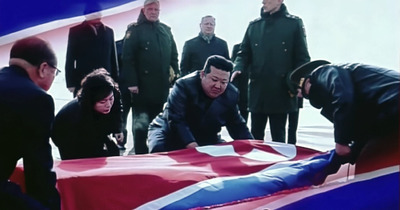 金正恩同志は自ら革命の戦没将兵に別れを告げた。深い敬意を込めて英雄たちの棺に神聖な国旗をかけることで、党と人民がその不朽の功績に捧げる深甚なる感謝を象徴した。