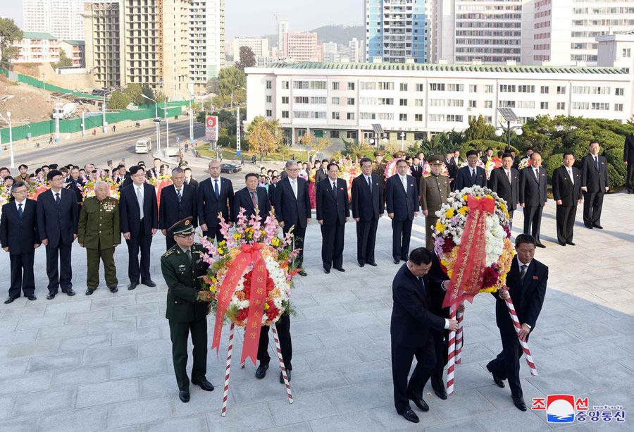 중국인민지원군 조선전선참전 69돐에 즈음하여 25일 우의탑에 화환들이 진정되였다. 화환진정에는 최고인민회의 상임위원회 부위원장 태형철동지와 조선로동당 중앙위원회 부부장 리창근동지,외무성 부상 리길성동지를 비롯한 관계부문 일군들,시내 근로자들이 참가하였다. 장승강 조선주재 중화인민공화국 림시대리대사와 대사관 성원들,조선에 체류하고있는 중국손님들,중국류학생들,화교들이 여기에 참가하였다. 조선로동당 중앙위원회,조선민주주의인민공화국 최고인민회의 상임위원회,조선민주주의인민공화국 내각의 공동명의로 된 화환이 우의탑에 진정되였다. 외무성,인민보안성,대외경제성,문화성,대외문화련락위원회와 조중친선협회,조선로동당 평양시위원회와 평양시인민위원회,조선주재 중화인민공화국대사관 등의 명의로 된 화환들도 진정되였다. 한편 이날 개성시,평안남도 회창군,안주시 등에 있는 중국인민지원군렬사릉원,렬사묘들에도 화환들이 진정되였다.