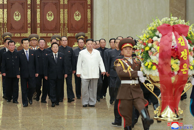 11:42 경애하는 최고령도자 김정은동지께서 조선로동당창건 74돐에 즈음하여 당중앙위원회 정치국 성원들과 함께 금수산태양궁전을 찾으시였다 | |