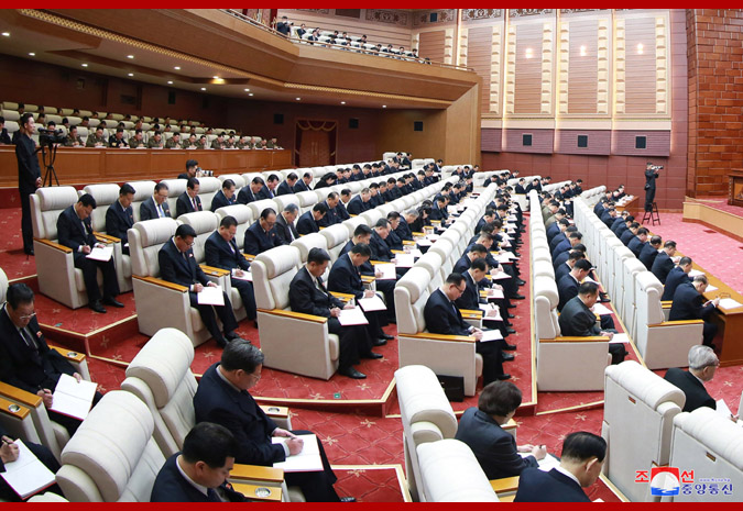 На пленуме прошло обсуждение первой повестки дня. Товарищ Ким Чен Ын выступил с докладом. В своём докладе он научно обосновал изменения в международной обстановке и особенности обостряющейся день за днем ситуации в регионе. Он осветил основную цель недавнего саммита глав КНДР и США и принципиальную позицию партии. Также председатель отметил, что мы, высоко неся знамя опоры на собственные силы, должны неустанно продвигать строительство социализма на основе чучхейской экономики, соответствующей условиям и геополитической реальности, и тем самым нанести сокрушительный удар по бьющимся в истерике враждебным силам, ошибочно полагающим, что санкциями можно покорить корейский народ. Товарищ Ким Чен Ын подытожил успехи и ошибки, имевшие место быть в борьбе за ускорение строительства социализма под высоко поднятым знаменем опоры на собственные силы после 7-го съезда партии, и поставил неотложные задачи, которых мы должны достичь для проявления мощи самостоятельной экономики. Он отметил, что во всех областях, мы, под знаменем опоры на собственные силы и самообеспеченности, вели стойкий наступательный бой, и достигли за последний годы больших успехов в строительстве социализма. Председатель упомянул, что был достигнут перелом в борьбе за чучхезацию и самообеспеченность народного хозяйства, была гордо продемонстрирована скрытая мощь и могучий потенциал нашей самостоятельной экономики, и отметил, что видя замечательные успехи, достигнутые в строительстве социализма, он остро почувствовал бесспорную правоту нашей линии. — Опора на собственные силы и самостоятельная национальная экономика - это основа существования социализма корейского образца, движущая сила его прогресса и развития. Это вечная жизненная артерия, от которой зависит судьба нашей революции. При наращивании темпов социалистического строительства под знаменем опоры на собственные силы, первостепенным вопросом встаёт создание прочного залога для подъёма отечественной экономики на новую фазу развития путем расширения и укрепления основ чучхейской экономики, — подчеркнул товарищ Ким Чен Ын и наметил актуальные отраслевые задачи народного хозяйства. Председатель ТПК отметил, что работники всех отраслей и единиц должны уяснить, что от последовательного претворения в жизнь политики партии об отдаче приоритета науке и образованию, отдаче приоритета кадрам зависят не только успехи своих отраслей , но и будущие успехи в строительстве социализма. Ии следует посвящать все своё работе по развитию науки и образования. Он особо подчеркнул необходимость решительного повышения роли парторганизаций в борьбе за ускорение строительства социализма. На пленуме прошли прения. Выступившие единогласно и всесторонне поддержали исторический доклад Председателя ТПК, осветивший немеркнущую линию, которой мы должны придерживаться в борьбе за построение социалистической державы. На пленуме обсудили вторую повестку дня. Председатель ТПК предложил план формирования государственных руководящих органов, в том числе Госсовета КНДР, президиума ВНС и Кабинета Министров, который следует внести в первую сессию ВНС 14-го созыва. Участники пленума единогласно одобрили план формирования государственных органов. Пленум обсудил третью повестку дня – организационный вопрос. По 