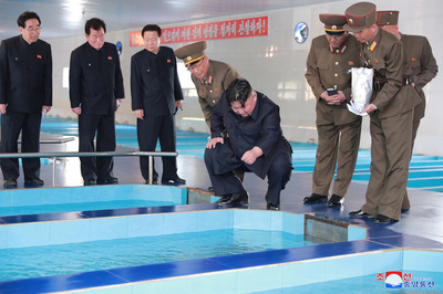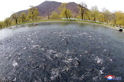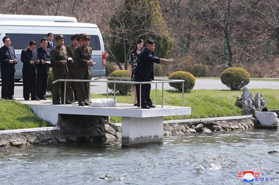 조선로동당 위원장이시며 조선민주주의인민공화국 국무위원회 위원장이시며 조선민주주의인민공화국무력 최고사령관이신 우리 당과 국가, 군대의 최고령도자 김정은동지께서 리설주동지와 함께 4월 16일 신창양어장을 현지지도하시였다. 조선로동당 중앙위원회 정치국 상무위원회 위원이며 조선민주주의인민공화국 국무위원회 제1부위원장이며 최고인민회의 상임위원회 위원장인 최룡해동지가 동행하였다. 김평해동지, 오수용동지, 조용원동지를 비롯한 당중앙위원회 간부들이 동행하였다. 경애하는 최고령도자동지를 조선인민군 총정치국장 륙군대장 김수길동지, 인민무력상 륙군대장 노광철동지와 양어장의 일군들이 맞이하였다. 경애하는 최고령도자동지께서는 새로 훌륭히 꾸린 혁명사적교양실을 돌아보시였다. 경애하는 최고령도자동지께서는 혁명사적교양실을 잘 꾸린데 대하여 평가하시면서 양어장에 와서 귀중한 혁명사적자료들을 다시 보니 한평생 우리 인민들과 인민군전사들을 위해 마음써오신 위대한 수령님과 위대한 장군님 생각이 더해진다고, 특히 고난의 행군, 강행군시기 여러차례나 찾아오시여 양어장을 양어의 본보기단위로, 세계적인 양어기지로 개건현대화하도록 현명하게 이끌어주신 위대한 장군님의 헌신적인 로고를 떠나 오늘의 신창양어장에 대하여 생각할수 없다고 뜨겁게 말씀하시였다. 경애하는 최고령도자동지께서는 양어장에 아로새겨진 위대한 장군님의 령도사적을 통한 위대성교양을 깊이있게 진행함으로써 양어의 든든한 기초를 마련하시고 밝은 전망을 열어주신 장군님의 불멸의 업적을 길이 빛내여나가야 한다고 말씀하시였다. 경애하는 최고령도자동지께서는 양어장구내를 거니시며 규모있게 펼쳐진 양어못들이 한폭의 그림처럼 안겨오는 아름다운 전경을 부감하시였다. 경애하는 최고령도자동지께서는 양어장환경이 언제 와보아도 깨끗하고 마음에 든다고 하시면서 수림화, 원림화를 실현할데 대한 당정책이 가장 정확히 구현된 양어장이라고 높이 평가하시였다. 경애하는 최고령도자동지께서는 양어장일군들로부터 현지지도과업관철정형에 대한 해설을 들으신 다음 여러 양어못들과 물고기알깨우기장 등을 돌아보시면서 양어장의 관리운영정형을 구체적으로 료해하시였다. 경애하는 최고령도자동지께서는 나라의 양어과학기술을 높은 경지에 올려세우는데서 인민군대가 많은 일을 하였다고 하시면서 온 나라가 인민군대의 모범을 본받아 우리 당의 양어정책을 끝까지 관철하여 우리 인민들과 인민군군인들에게 맛좋고 영양가높은 물고기를 많이 먹이시기 위해 그토록 마음써오신 위대한 장군님의 념원을 반드시 실현하여야 한다고 말씀하시였다. 경애하는 최고령도자동지께서는 신창양어장의 일군들과 종업원들이 더 높은 목표를 내걸고 물고기생산에서 비약적발전을 이룩함으로써 위대한 장군님의 유훈대로 더 많은 물고기들을 수도의 급양봉사부문과 군인들에게 보내주어야 한다고 당부하시였다. 경애하는 최고령도자동지께서는 신창양어장이 양어의 주체화, 과학화, 현대화, 공업화, 집약화를 실현하기 위한 사업에서 계속 기치를 들고나감으로써 우리 나라 양어기술발전의 척도를 보여주는 표준양어장, 나라의 양어를 발전시키는데서 본보기단위, 교육단위로서의 사명과 역할을 해나갈데 대한 당의 믿음과 기대에 보답하여야 한다고 말씀하시였다. 경애하는 최고령도자동지께서는 나라의 전반적양어사업에서 극복해야 할 문제점들과 양어부문에서 혁명적전환을 일으키기 위한 강령적인 가르치심을 주시였다. 신창양어장의 일군들과 종업원들은 우리 인민들과 군인들에게 맛좋고 질좋은 생신한 물고기를 더 많이 보내주시기 위해 크나큰 로고와 심혈을 바쳐가고계시는 경애하는 최고령도자동지의 숭고한 뜻을 받들어 양어혁명의 불길을 더욱 세차게 지펴올려 물고기생산에서 새로운 변혁을 일으켜나갈 불타는 결의를 다짐하였다. | |